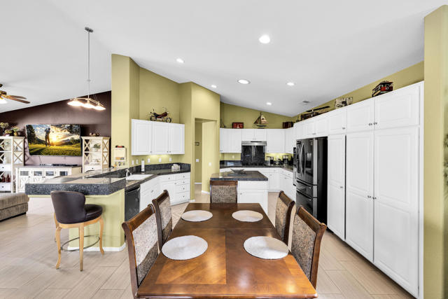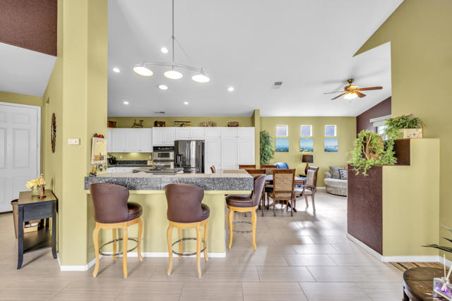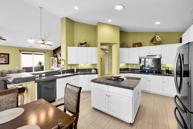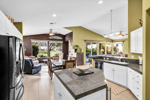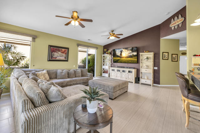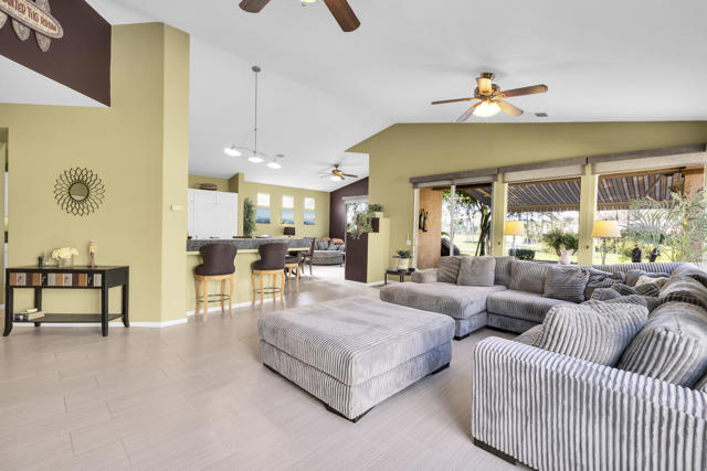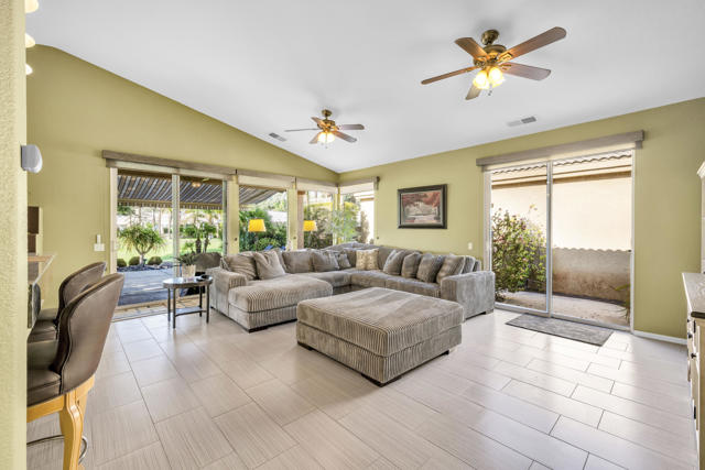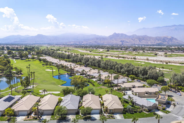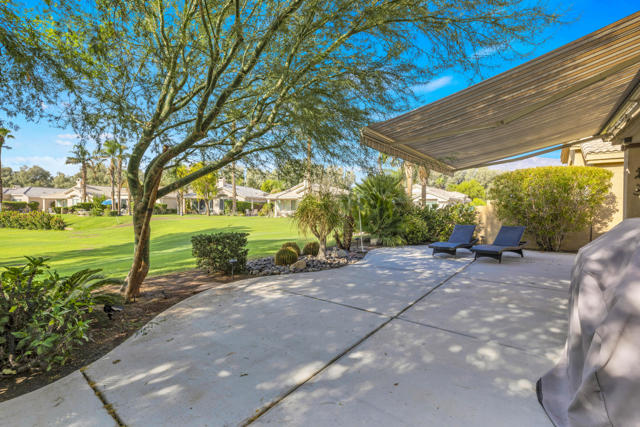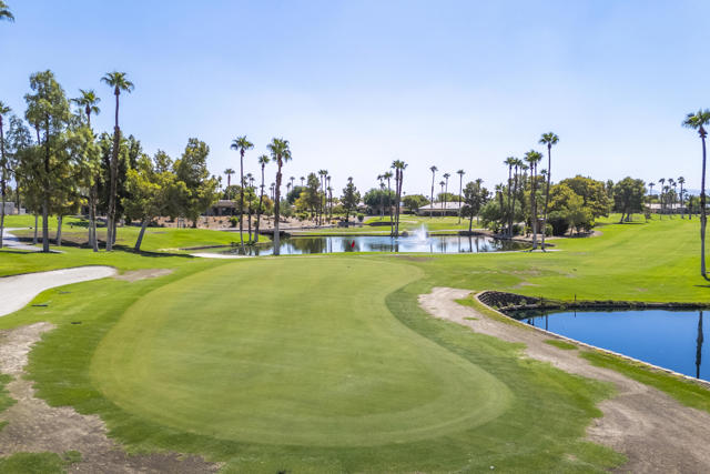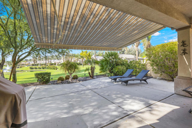 This one is a Show Stopper! It sits on one of the largest most private lot available. Stunning Golf Course, Lake, Fairway Views! Southern Exposure. Backyard is a paradise! With a custom retractable awning! Enter into a grand great room, windows through-out for that light bright sunshine. Custom Window coverings on every window. Custom Paint, Custom flooring, custom Light fixtures thru-out. separate dining area. Stunning Stone Fireplace, TV's in Every room. Kitchen is fabulous and super big, Black granite counter tops, gas stove top, center island with all top-notch appliances, Owner spared no expense! Three large bedrooms with Master suite offering a custom shower, walk-in closet. 2nd bath has a custom shower, all bedrooms have closets, Extra back room that would make for a perfect office. Separate Laundry room with Top notch washer/dryer. New complete AC unit, Two car garage attached. Don't miss your chance on this one! The Desert Princess has an affordable 27-hole PGA Championship golf course, no Tee-time lotteries, no initiation fees, rated among the best in the valley by GOLF DIGEST. The HOA includes a full Gym, Tennis Court, pickle Ball, A stunning Club House with a restaurant, Cable TV with WIFI all included in your HOA! Quiet community is away from the noise yet minutes from everything that is in Palm Springs; restaurants, shopping, casinos, an international airport, the Tramway, Art Museums, Theaters, Our new Acrisure Arena. Sold Furnished! Easy to show! A must see!