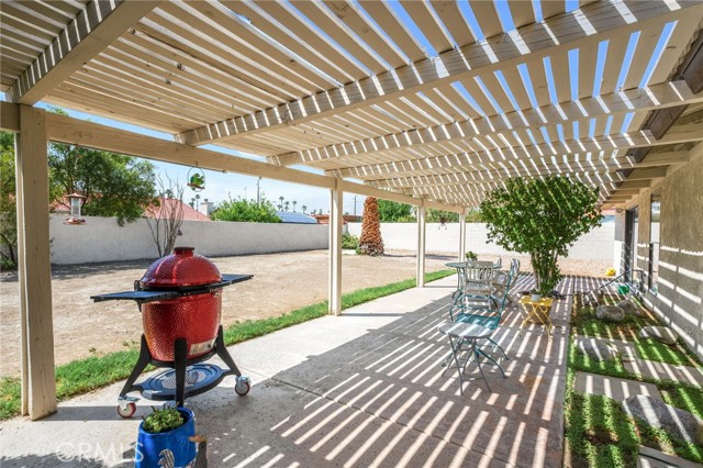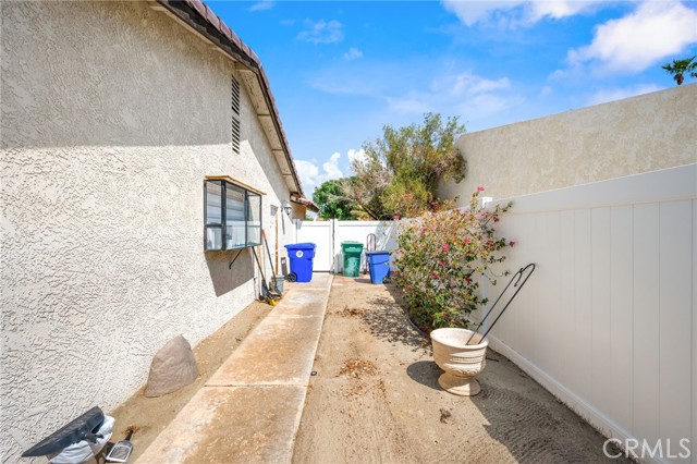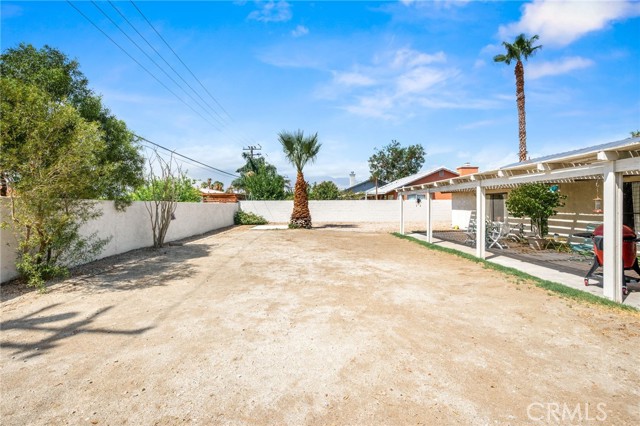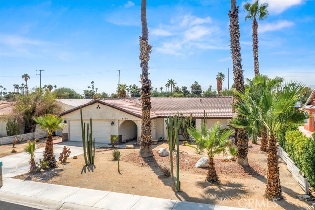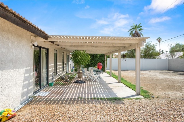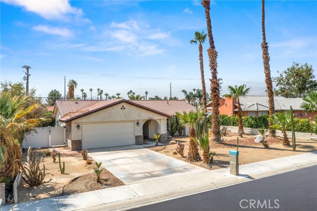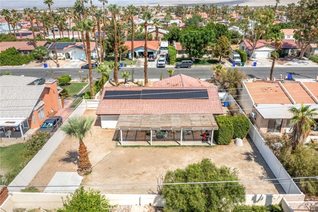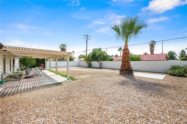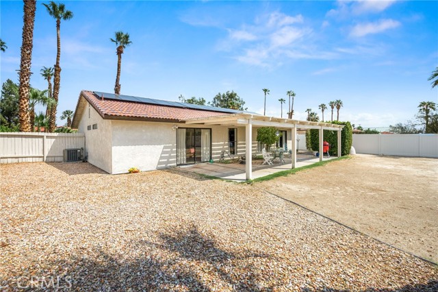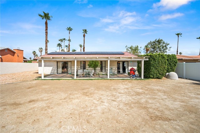 **SELLER IS MOTIVATED!!**Discover refined desert living in this beautifully appointed 3-bedroom, 2-bath residence tucked within the sought-after Rio Vista neighborhood of Cathedral City. Designed with an open-concept floor plan, this home offers a seamless flow between the living, dining, and kitchen areas—ideal for entertaining and relaxed everyday living. Once inside, the home’s step-down living room creates an elegant focal point, framed by expansive windows that fill the space with natural light. There’s plenty of room for a large TV and comfortable seating, making it perfect for both quiet evenings and lively gatherings. The chef-inspired kitchen is appointed with sleek stainless-steel appliances that include a refrigerator, oven/stove, dishwasher and microwave. A spacious kitchen island perfect for serving or casual barstool dining and a seamless connection to the dining and living areas- making this area the true heart of the home. The primary suite is a tranquil retreat and large enough for a king-size bed. It features sliding glass doors that open directly to the extra-large sized backyard, an en-suite bathroom and a generous walk-in closet for all your clothes and shoes. The second bedroom offers comfortable proportions while the third bedroom, complete with a good-sized closet, is currently styled as an office—both bedrooms providing flexibility to suit your lifestyle needs. Step outside to your private backyard oasis, perfectly suited for al fresco dining, gatherings under the stars, or tranquil mornings in the sun. The expansive backyard is a true blank canvas, offering endless possibilities. Add a sparkling pool, create a cozy fire pit gathering space, bring in RV parking or design a storage shed or workshop. Whatever your vision, this outdoor space is ready to be transformed into your personal desert retreat. Enjoy the benefit of FULLY PAID SOLAR panels, combining modern efficiency with peace of mind. With its blend of sophistication and comfort, this home embodies the best of the desert lifestyle. ~Welcome Home~