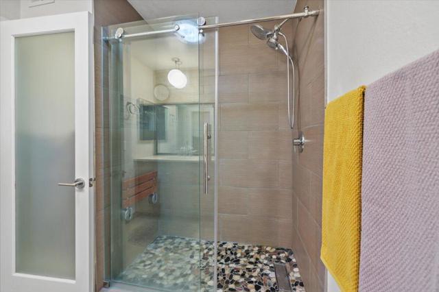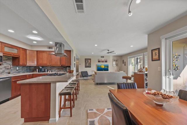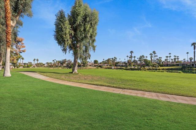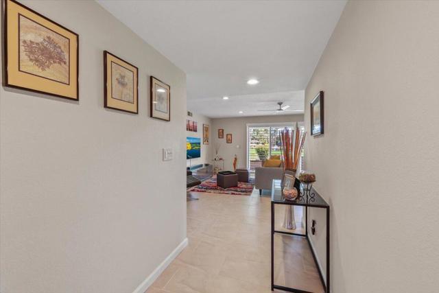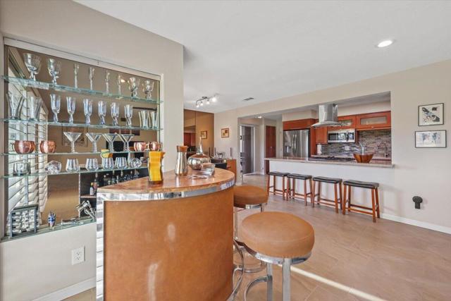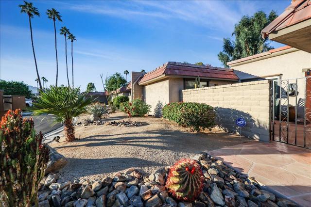 Completely reimagined and impeccably upgraded, this extensively customized condo offers an outstandinglocation in the heart of Cathedral City's gated Cathedral Canyon Country Club. Located at the end ofan intimate cul-de-sac, the single-level design is ready for move-in and features a gated entry courtyard withbeautiful mountain views, creating the ideal spot for morning coffee. An expansive wraparound back patioborders the lush fairways of the community's 18-hole golf course and embraces vast vistas of rolling turf anda shimmering lake. Indoors, two bedrooms, two baths, a den with courtyard access, and a custom bonusroom/office that opens to the rear patio are revealed in approximately 1,736 square feet. Walls werereconfigured to create a seamless space that enriches daily living and effortless entertaining. A custom MidCentury-inspired entry door leads to living and dining rooms that frame scenic views through windows andsliders opening to the patio. Chefs of all skill levels will appreciate an open kitchen with peninsula bar,handsome stained-wood Shaker cabinetry, solid-surface countertops, a full tile backsplash and preferredstainless steel appliances. Both bedrooms provide patio access, and the primary suite hosts frosted-glasswardrobe doors and an ensuite bath with custom walk-in shower. Recessed LED lighting, contemporarylighting fixtures and solar-tube skylights illuminate the home, while custom paint, designer floor tile, ceilingfans and plantation shutters lend upscale flair. Upgraded dual-paned sliders throughout, newer HVAC, a split AC unit inthe bonus room, and a newer roof with recent re-coat enhance energy efficiency. Outdoors, the patio andcourtyard decking was resurfaced to look like stone. The Cathedral Canyon Tennis Club and clubhouse aresteps away, and the gated enclave features countless pools, parks and pathways. This residence isperfect as a lock-and-go vacation getaway and a wonderful year-round home. Downtown Cathedral City'sshops and restaurants, Palm Springs, Rancho Mirage and Palm Desert are all within easy reach, and milesof hiking trails, scenic parks and even a surf club are moments away.