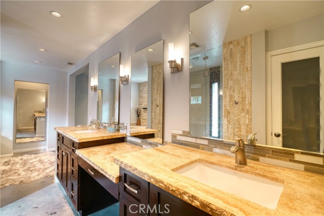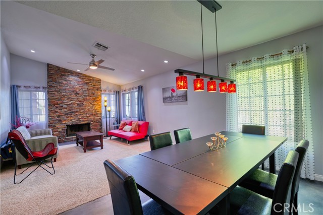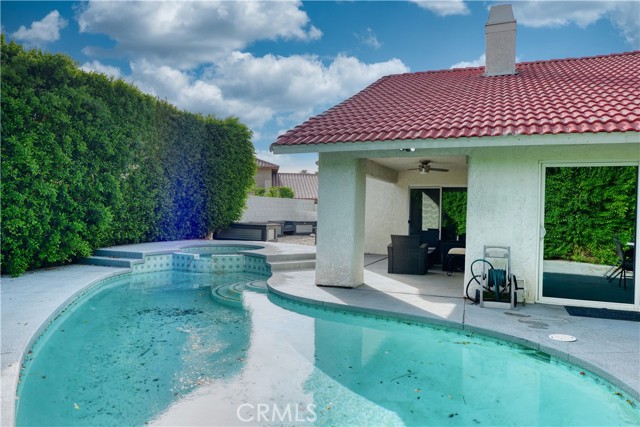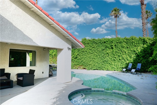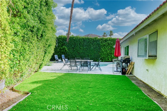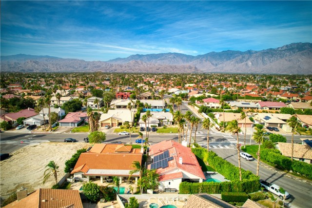 DESERT OASIS IN CATHEDRAL CITY: STUNNING CORNER LOT WITH POOL, SPA, & MOUNTAIN VIEWS...Come, unpack and enjoy this delightful Panorama neighborhood Cathedral City home with a large CORNER lot. This turnkey 3 bedrooms, 2-bathroom home, feels just like a private resort! As you enter the home, a warm feeling surrounds you: high ceilings and large windows make the interior light and bright! This gorgeous modern home offers a large family room as well as a living room with beautiful fireplaces in each. Formal dining room adjacent to the kitchen for sharing love and celebrations is here for you with impressive light fixtures. Create your festivities on the huge island in the modern kitchen with double oven and stainless-steel appliances, wine cooler and enjoy your morning breakfast here as well. Did I mention the pot-filler faucet over the gas stove? The huge primary suite is designed for both your sleep/rest and indulging in those long showers under dual head step-in shower with the option of soaking into the tub to unwind. The enormous walk-in closet feels like another room is so big with custom made shelves and storage. Access to the resort style backyard from this room or family room and enter to enjoy paradise with large sparking pool and spa along with open firepit for those starry nights. This home is a true inspiration for relaxation and entertainment. Purchased 31 solar panels on top of the newer roof will definitely save a ton of energy and make it easier on your budget. All high-quality appliances and furniture except for dining table set and TV are included in the sale. Oversized garage is about 625 sq ft. 32 solar panels save you a ton of money on pool/spa and A/C energy.