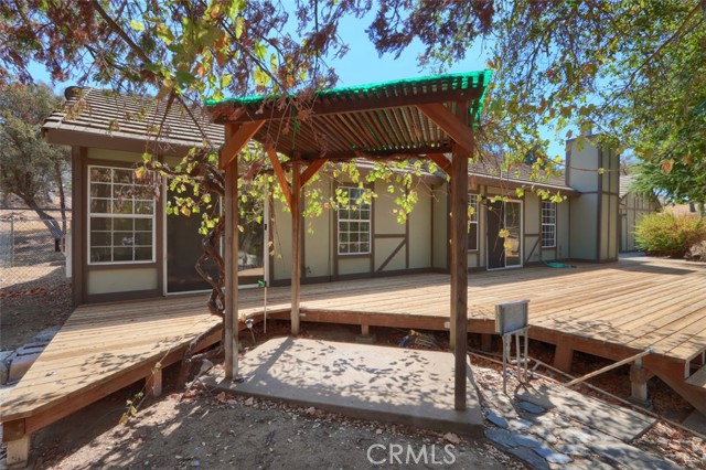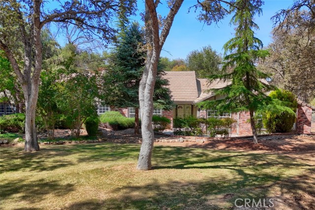Spacious Tudor-Style Retreat in Whispering Oaks Estates | 5+ Acres | Privacy Gated Community | Equestrian Trails | Near Yosemite. Feast your eyes on this exceptional Tudor-style home, tucked away in the prestigious gated community of Whispering Oaks Estates. Set at the end of a quiet cul-de-sac, this private retreat offers 5+ acres of rolling hills, a seasonal creek and park-like landscaping with a full irrigation system—perfect for those who crave tranquility and nature. Step onto the expansive back deck, ideal for barbecues, dinner parties, or peaceful evenings by the fire, all set to the soothing soundtrack of the seasonal creek flowing just below. Inside, the home boasts a split-layout primary suite with a cozy gas stove, deck access, walk-in closet, and a spa-like ensuite featuring a double vanity, soaking tub, and separate shower. The cathedral-ceiling family room invites you in with a charming brick fireplace, wet bar, and wood stove insert—a warm, inviting space for gatherings. The kitchen is designed for culinary creativity and connection, with granite countertops, a large walk-in pantry, built-in desk, high-top breakfast bar, and a picture window with scenic views. Other interior highlights include: * Tray ceilings in the entry and formal dining room * Wood and tile flooring throughout * New trim, baseboards, light fixtures, plugs & switches * Fresh paint, retextured walls, refinished cabinets, and remodeled bathrooms * The home also offers a 3-car attached garage with built-in cabinetry, perfect for storage or projects. Enjoy the benefits of a private lake, equestrian trails, and proximity to local gems—just 15 minutes to Mariposa, 30 minutes to Merced, and around 1 hour to Yosemite National Park. Don’t miss your chance to own this rare gem in one of the area's most exclusive neighborhoods.