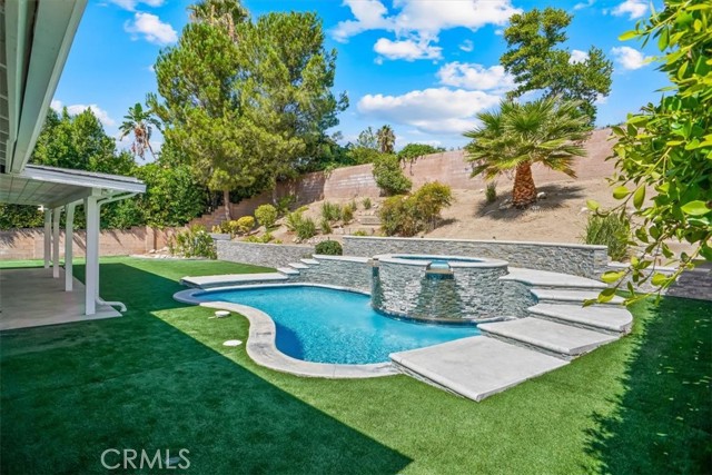 Curb Appeal and Entertainer’s Paradise! Nestled on a quiet cul-de-sac in one of Chatsworth’s most desirable neighborhoods, this light filled single story pool home offers the perfect blend of comfort, style, and outdoor living. With 4 bedrooms, 2.5 bathrooms, and over 2,300 sq. ft. of living space on an expansive 11,000 sq. ft. lot, this home is designed for both everyday living and unforgettable entertaining. Step inside to find a warm, inviting interior featuring hardwood floors, smooth ceilings, recessed lighting, plantation shutters, dual-pane windows, and newer central air & heating for year-round comfort. The spacious family room boasts a cozy stone fireplace and a wet bar, with sliding glass doors that open directly to your private backyard oasis. A true showstopper? The resort-style grounds are meticulously landscaped for low maintenance and maximum beauty, the backyard features a stunning pool and spa, completely redone approximately 5 years ago. A large covered patio provides the ideal space for dining al fresco, relaxing in the shade, or hosting weekend gatherings with friends and family. The private primary suite is a serene retreat with its own sitting area, walk-in closet, and en suite bathroom complete with dual sinks, a soaking tub, and a separate shower. All this, just minutes from top-rated schools, shopping and dining at The Vineyards in Porter Ranch, parks, hiking trails, and easy freeway access. Don’t miss the opportunity to own this wonderful Chatsworth home where comfort meets California living at its finest.