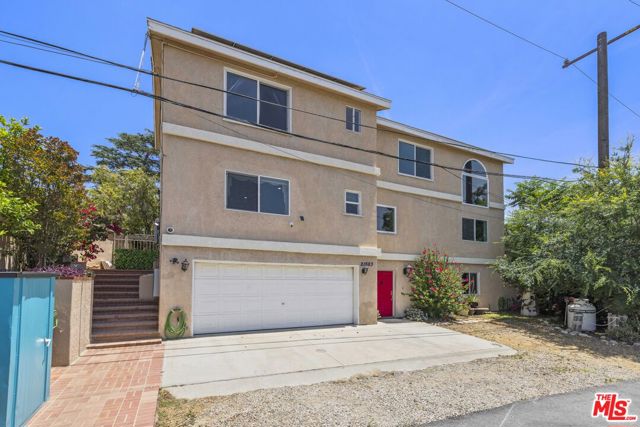 INCREDIBLE VALUE of more than $45K in energy upgrades INCLUDED (new windows, water heater, solar panels and even solar batteries!). PRICED TO SELL now! Tucked into the historic hills of Twin Lakes, this newer-construction home is anything but cookie-cutter. Bursting with personality, light, and soul, it offers vibrant design, thoughtful functionality, and mountain serenity across three engaging levels. Originally established in the 1920s as a resort escape, Twin Lakes still feels like a hidden hillside village just minutes from the 118 and with Deerlake Ranch's $2M+ homes nearby, the secret is starting to slip. Designed by celebrated SoCal architect Rene Mendoza, the home offers 3 bedrooms and 4 bathrooms, with each bedroom featuring an en-suite layout and walk-in closet a luxury rarely seen at this price point. The entry level includes a standard two-car garage, a flexible suite currently set up as an office/game room, and a dedicated laundry area plus bonus closet space for all the gear modern life demands. Whether you use this lower level for guests, in-laws, focused work, or pure fun, it's separated just enough to give you privacy and peace. The main level kitchen is a surprise in the best way: its wraparound cabinetry spans two full walls, creating a sleek, functional cooking environment that nearly hides in plain sight and yes, it includes a cleverly placed built-in TV for those times when you just can't miss your show. Newer appliances, generous counter space, and a breakfast bar positioned by the window offer the perfect spot for morning coffee or evening wine with a view. This space flows directly into the dining area and the recently renovated powder room with updated cabinetry and quartz counters. The living room is a showpiece, with double-height ceilings, oversized windows flooding the space with natural light, and a gas fireplace anchoring cozy winter nights. Art lovers and entertainers alike will feel right at home here. French doors lead to a lush, private backyard with a custom-built covered patio a shaded outdoor retreat that's equally suited for quiet afternoons or lively weekend gatherings. Upstairs, the primary suite is rich with color, life, and views easily offering the best mountain panorama in the home. The spa-like bath includes a jetted soaking tub, dual vanities, and calming custom finishes designed for end-of-day restoration. What sets this home even further apart is its commitment to energy independence and sustainability. With solar panels and a whole-home battery backup system (plus new energy efficient windows throughout), you get more than just lower energy bills you gain peace of mind, security, and freedom from the little anxieties (like "did I leave that light on?"). This system helps keep you powered through outages and dialed in with clean, efficient living every day. And here's the rare bonus: the house next door also designed by Mendoza and developed by the same owner is available too. Whether you're thinking multigenerational living, live/work compound, or just want room to grow, this is your chance to own a pair of truly one-of-a-kind homes in one of L.A.'s most under-the-radar hillside neighborhoods.