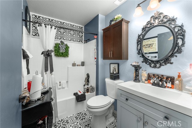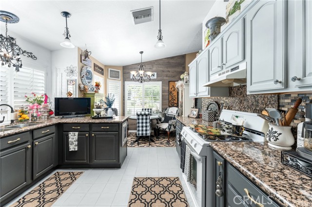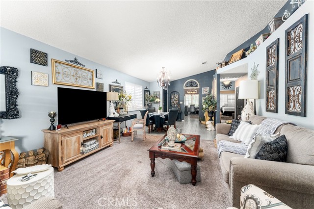 Turnkey and Upgraded 2 Bdrm, 2 Bath Single-Story Home in Highland Springs Country Club, a 55+ Gated Community. This house is so beautifully decorated and has oodles of charm!! Conveniently located across the street from the Clubhouse. Low Maintenance Front Yard and Custom Wrought Iron Gate lead to side Main Entrance. The beautiful Decor draws you in and continues through-out the home. Custom Painted Walls, Doors and Tiled Floors. Vaulted ceilings in Living Room, Family Room, Kitchen and Primary Bedroom. Plantation Shutters and Upgraded Light Fixtures thru-out. Wood Laminate Floors in Family Room, Hallways and Primary Bathroom. Tiled Floors in Kitchen, Breakfast Nook and Bathrooms. Living Room and Bedrooms are Carpeted. Living Room features Gas Burning Fireplace and Slider to Back Yard with Dining Area. Kitchen has Granite Countertops, Gas Range, D/W, Stainless Steel Sink and Refrigerator is included. Separate Family Room currently being used as a bedroom has door leading to Garage. Washer and Dryer have been moved from garage to a Double-Door Closet in Hallway and are included. Primary Suite has Remodeled Bathroom with New Vanity, Sinks, Commode, Glass Enclosure to Walk-in Shower, Mirrors, Plumbing Fixtures and Lighting. Spacious Guest Bedroom has Mirrored Wardrobe Doors. n Guest Bathroom features Custom Tiled Floors and Wall above Tub, New Commode and Mirror. Back Yard has two Patio Covers and an Open Seating area with Painted Block Wall. New A/C and Heater, Registers and Ducting in 2019. Highland Springs Country Club features 2 Private 9-Hole Golf Courses that provides Free Golfing to Residents. The Clubhouse has a Gym, Pool and Spa, Billiard Room, Tennis Courts, Pickleball Courts and a Spacious Kitchen and can be reserved for Private Parties. Close to San Gorgonio Hospital, Shopping and Freeway. You won't want to miss seeing this gorgeous home!!!