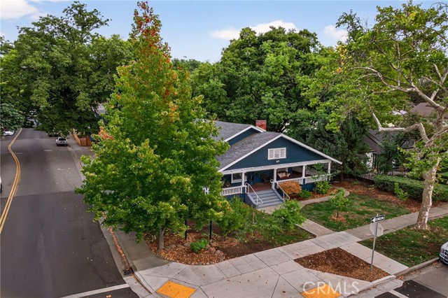 Discover a rare investment opportunity with two charming homes on a popular corner Chico lot, each currently operating as successful Airbnbs! The main home, built in the 1920s, showcases timeless character with soaring ceilings, beautiful original hardwood floors, and a bright sunroom overlooking the pool with all-new windows. The thoughtful floor plan includes multiple bathrooms—one fully remodeled to be handicap accessible with railings and a ramp. Recent upgrades bring peace of mind, including brand-new exterior paint, a Trexdecking front porch, and a replaced $15k sewer line. Adding to the property’s appeal is a huge wrap-around porch and an abundance of fruit trees—peach, cherry, and fig—that create a welcoming outdoor atmosphere. The sparkling pool was resurfaced just last year and includes a brand-new pool sweep, creating the perfect summer retreat. At one time, the home was configured as an 8-bedroom property, offering easy potential to convert back for additional rental income. The permitted cottage, once a garage, has its own address and is currently an Airbnb favorite. It offers private a spacious room with murphy bed, windows showcasing pool and neighborhood, a full bathroom and a kitchenette. It also has an on-demand hot water heater and a newer split HVAC system for comfort year-round. Whether you envision multi-generational living, a live/work setup thanks to the commercial zoning, or simply continuing its use as income-producing vacation rentals, this property offers unmatched versatility. Both homes enjoy private layouts, updated amenities, and flexible use options—live in one while renting the other, use or rent out one of the homes for commerical useage or maximize investment potential by running both as rentals. With onsite parking, handicap-friendly updates, and prime proximity to Downtown Chico, Bidwell Park, schools, restaurants, and shopping—plus the unbeatable location just one block from Chico State and four blocks from Enloe Hospital—this property is as versatile as it is valuable!