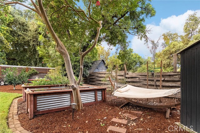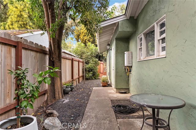 Two units on one property! This Chico gem features a 3 bedroom, 1 bathroom main house (1,301 sq. ft.) plus a beautifully remodeled 450 sq. ft. studio unit—perfect for multi-family living, rental income, or guest accommodations. Inside the main home, you’ll be welcomed by a bright living room with white-painted exposed beam ceilings that add charm and character, paired with a cozy wood-burning fireplace for a warm and inviting atmosphere. The open layout flows into the dining space and kitchen, where you’ll find abundant cabinet storage and a large window over the sink. The primary bedroom includes a spacious walk-in closet, while the bathroom offers a unique clawfoot tub. Two additional bedrooms provide space for family, guests, or a home office. Modern upgrades include new luxury vinyl flooring, a newer roof, and a newer A/C unit, making this home move-in ready with room to add personal touches. The private studio, remodeled in 2021, includes a full bathroom, range, refrigerator, stackable washer and dryer, newer flooring, fresh interior paint, a mini split system for heating and cooling, and its own fenced yard with separate entrance. The property sits on a spacious lot with a true park-like setting. Outdoors you’ll find multiple sitting areas, raised garden beds, mature trees (including olives), a firepit, and string lighting for evening ambiance. A shed offers additional storage, while the shaded patio and large lawn provide plenty of space to relax or entertain. Located just minutes from shopping, Chico State, and great restaurants, this property blends comfort, charm, and flexibility—whether you’re looking for a family home with guest space, or a smart investment opportunity.
