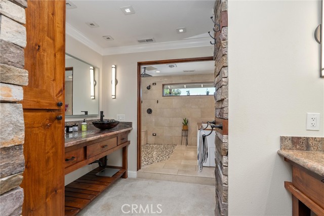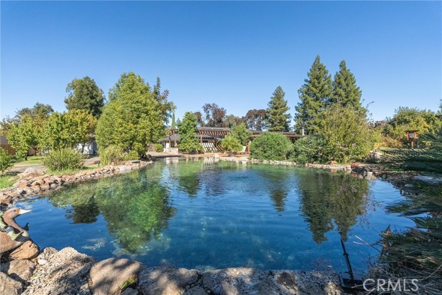 Every day feels like a getaway in this stunning custom home. A rare blend of luxury, comfort, and entertainment all in one. With 4 spacious bedrooms, 2.5 bathrooms, and over 3,100 sq. ft. of beautifully designed living space, this property is truly one of a kind. Step inside to a grand, open kitchen featuring upgraded countertops, newer stainless-steel appliances, and abundant custom cabinetry. The oversized island flows seamlessly into the living area, perfect for family gatherings or hosting friends. The living room impresses with its cozy pellet stove and a fully equipped custom bar, complete with granite countertops, custom lighting, a full-size refrigerator, a wine fridge, a sink, and six taps. An entertainer’s dream! Each bedroom offers generous space and comfort, while the primary suite feels like a five-star retreat. Enjoy a walk-in closet, dual vanities, a private wet bar with a wine fridge, an oversized walk-in shower with multiple showerheads (including a rainfall showerhead), and a two-person jetted tub, ideal for unwinding at the end of the day. Step outside and discover an outdoor oasis designed for year-round enjoyment. The tri-level patio boasts a complete outdoor kitchen, multiple seating areas, a large bar, ceiling fans, a mounted TV, a built-in sink, BBQs, a smoker, and ample under-counter storage. At the center is a resort-style swimming pond with a beach entry, natural granite slabs, and a stunning waterfall feature, surrounded by mature landscaping and fruit trees that create your own private paradise. Additional features include a 30' x 40' powered shop with lighting, built-in air lines, and plenty of space for projects or hobbies. The backyard also offers an amphitheater-style lawn with a full outdoor theater system, complete with a high-definition projector and surround sound, perfect for movie nights under the stars. For those who love sustainable living, the property includes raised garden beds, a large chicken coop, and an impressive collection of fruit trees—peach, apricot, cherry, plum, pluot, orange, grapefruit, lemon, lime, fig, and pomegranate. Located just outside Chico city limits on 1.5 private acres, this home includes its own well, leased propane tank, and a semi-owned solar system. Welcome home to your very own private resort!