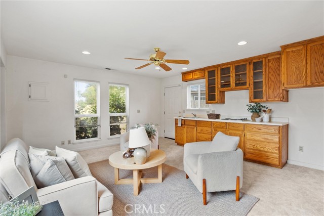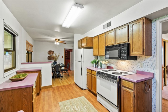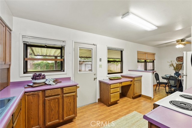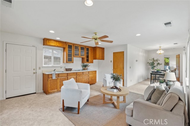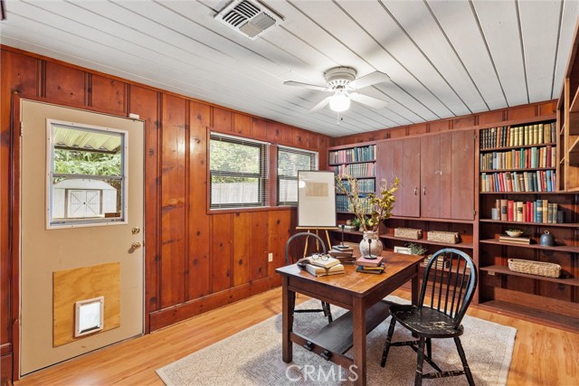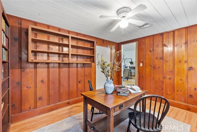 Unique and Spacious on a Large Lot - Welcome Home! This special 3 bedroom 2 bath home with a library as well as an office/bonus room has tons of character, is situated on a huge lot and is a fantastic opportunity to make this house into your home sweet home! With beautiful wood floors, a brick fireplace in the living room, a new 2 year old roof, ceiling fans throughout and more - this home won’t last long! The kitchen is spacious with lots of storage, a desk area, and has access to the concrete covered patio, making it perfect for entertaining. The bonus room/office leads to a second living area with its own HVAC system, a kitchenette with a cooktop, sink, pantry, space for a refrigerator, and dining area as well as a slider leading to the backyard, the third bedroom and the large second bathroom. The expansive backyard has a large grass area, storage shed, concrete covered patio, pomegranate tree, sprinklers and plenty of room for the garden of your dreams. Additionally, there is a front porch with brick features, large front lawn, one car garage with a utility sink, large driveway and so much more. This home has so much potential! Don’t miss the opportunity to own this unique home priced at $419,000!