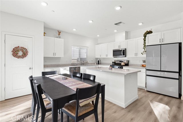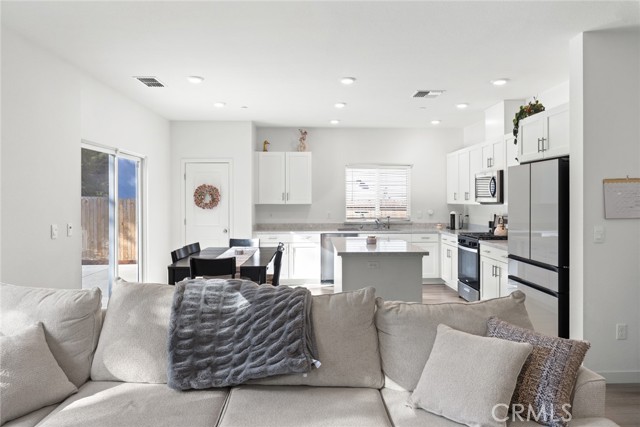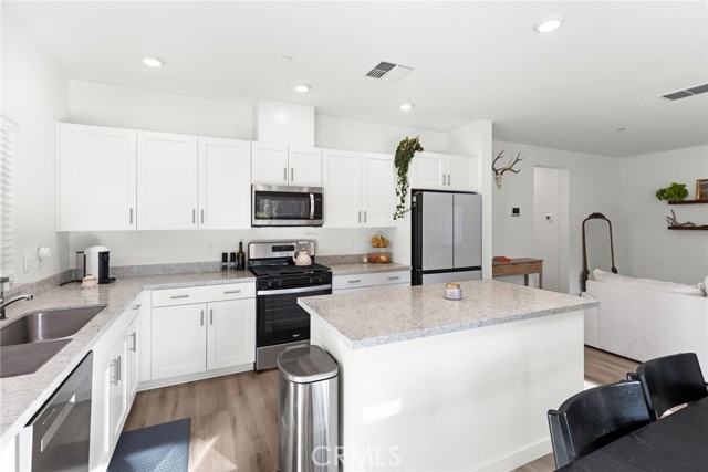 Better than new! This D.R. Horton home has been lived in just 1.5 years, saving you thousands with backyard landscaping and window coverings already complete. Set on arguably one of the best lots in the neighborhood—with no neighbor on one side and no two-story homes behind—you’ll love the sense of privacy and space this property offers. Step inside and you’re greeted by open-concept living, complete with recessed lighting, and waterproof hybrid-core flooring that flows throughout. The kitchen is both stylish and functional with crisp white cabinetry, quartz counters, stainless steel appliances, a gas range, and a large center island that makes the perfect gathering spot. The spacious primary suite is a true retreat with a walk-in closet and en suite bath featuring dual sinks and quartz counters. The guest hall bath also includes dual sinks, while the downstairs guest bath adds a touch of warmth with its modern wood vanity. Out back, the yard was designed for living and entertaining. A massive 30’ x 14’ concrete patio sets the stage for barbecues and gatherings, while the lush lawn and raised garden beds add charm and versatility. There is also a side yard big enough for a small trailer. This is also a true smart home—equipped with cameras, video doorbell, thermostat, garage, and front door access—all easily controlled through the ADT app. With energy-saving solar panels, an attached two-car garage, and thoughtful upgrades throughout, this home combines modern convenience with everyday comfort. From its premium lot and smart features to its stylish finishes and move-in ready upgrades, this property stands out as one of the best opportunities on the market today.