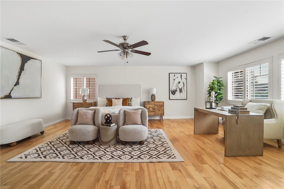 Welcome to this thoughtfully designed 4-bedroom, 3-bath residence offering the perfect balance of comfort and elegance. A highly desirable floor plan features a convenient downstairs bedroom, while an upstairs loft provides flexible space for a home office, playroom, or can be enclosed as a 5th bedroom per builder design. The main level is highlighted by both a spacious living room and a cozy family room, enhanced by upgraded wood shutters and abundant natural light throughout. The open-concept kitchen includes generous counter space, a walk-in pantry, and a sunny breakfast nook—ideal for casual dining. Retreat to the primary suite, complete with double-door entry, spa-like bathroom, and an oversized walk-in closet. Outdoors, the expansive backyard is perfect for entertaining, gardening, or simply relaxing. Nestled in a desirable low-tax, no-HOA neighborhood, this home combines thoughtful upgrades with lifestyle convenience, just minutes from excellent schools, shopping, dining, hiking trails, and major freeways.