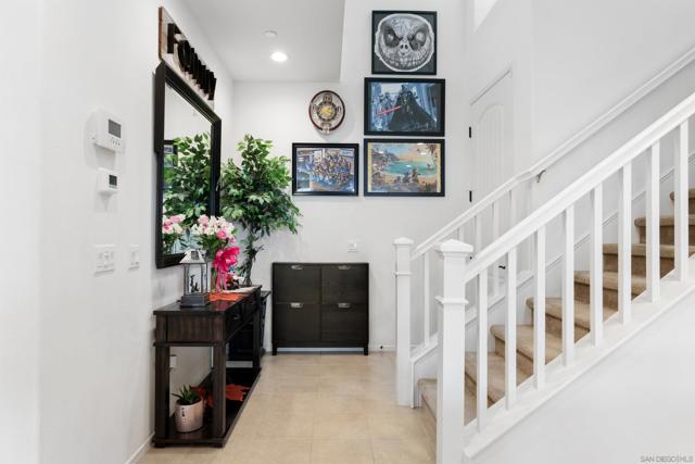 Assumable VA loan w/ 2.5% interest rate with the right offer! Dont miss out! Welcome to The Village of Escaya, where this bright and move-in-ready 4 bedroom + loft, 3 bathroom home is waiting for you! A full bedroom and bathroom on the first floor provide flexibility for guests. Inside you’re greeted by an open-concept that connects the kitchen, dining area, living room, and backyard space—perfect for entertaining family and friends. The chefs kitchen features generous countertop space, abundant cabinetry, walk-in pantry, stainless steel appliances, and an island with barstool seating. Upstairs, you’ll find the large primary suite with an en-suite bathroom and walk-in closet, along with two additional bedrooms equipped with ceiling fans, a shared bathroom, and a versatile loft ideal for a home office or play area. The convenience of an upstairs laundry room adds to the thoughtful layout. Outside is the large backyard retreat, complete with a covered patio for outdoor dining and a beautifully maintained hillside. Additional highlights include a brand-new A/C unit, paid solar, shutters throughout, tankless water heater, two-car garage, and second-level views. Living in Escaya means enjoying incredible community amenities, including monthly social events, parks, sport courts, sparkling pool and spa, an elementary school, local shops, and eateries. Plus, you’re just a short drive from Otay Ranch Town Center, major retailers, and dining options.