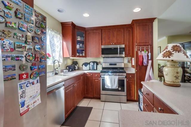 2-story home conveniently and centrally located. Quick access to both I-5 and I-805 freeways. This spacious residence offers three bedrooms upstairs plus a downstairs office/optional 4th bedroom, along with two full bathrooms upstairs and a half bath on the main level. The interior features travertine tile flooring throughout the first floor, carpet upstairs, and a kitchen with stainless steel appliances that opens to a generous dining area. Well-located home with plenty of space for today’s lifestyle.