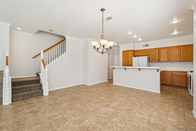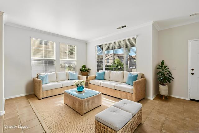 LARGE 3 BEDROOM & 2.5 BATHROOM HOME * NEW PAINT AND CARPET * 2 CAR ATTACHED GARAGE Welcome to this beautiful home in the highly sought-after, gated Gold Rush community of Otay Ranch. Ideally situated in a great neighborhood, this home offers the ideal blend of comfort, convenience, and modern living. Enjoy being just minutes away from top-rated schools, shopping, dining, and the Otay Ranch Town Center, as well as easy access to CA-125 and public transportation. This spacious 3-bedroom home features an open floor plan with tile flooring throughout the downstairs living area and new carpet upstairs. The bright and inviting kitchen offers plenty of cabinet space, ample counters, and a large center island, making it perfect for both cooking and entertaining. This home has Central heating and air conditioning and crown molding throughout. The master suite is a private retreat with dual sinks, a walk-in closet, and a relaxing ensuite bathroom. Enjoy your large front patio to unwind outdoors or entertain guests. The attached full-size two-car garage provides convenient access and extra storage, and additional street parking is available nearby. Gold Rush residents enjoy resort-style amenities, including a sparkling community pool, spa, parks, playgrounds, and beautifully maintained grounds. Move-in ready and freshly painted home also offers the perfect opportunity to personalize and make it truly your own. Property is virtually staged.