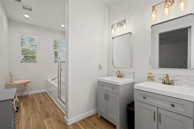 Step into this exceptional tri-level townhome in the Village of Montecito, a rare opportunity to own one of the most thoughtfully upgraded homes in the community. This 4 bedroom, 3.5 bathroom residence offers 2,342 square feet of beautifully designed living space created for modern living and effortless comfort. The open-concept main level welcomes you with luxury vinyl flooring, high ceilings, and abundant natural light. The chef-inspired kitchen features Samsung smart appliances, quartz countertops, a large island with bar seating, and custom cabinetry that provides exceptional storage. Perfectly connected to the living and dining area, this inviting space is ideal for entertaining or relaxing at home. Upstairs, the primary suite offers a serene retreat with a spa-style bathroom, dual sinks, an oversized shower, and a walk-in closet. Two additional bedrooms, a full bathroom, and a generous laundry room complete this level, combining practicality and style for everyday living. The third floor is a true highlight, featuring a private bedroom with its own full bathroom and a professionally designed home theater loft that conveys with the home. It’s the perfect space for guests, extended family, or movie nights. Every detail has been curated for convenience and peace of mind, including smart-home technology, solar panels, an EV charger, and all appliances included. The attached two-car garage offers additional storage and direct access. Located in the highly sought-after Village of Montecito, residents enjoy resort-style amenities such as a pool, spa, clubhouse, fitness center, playgrounds, and BBQ areas. All of this is just steps from Grove Park and within walking distance to highly rated schools. This stunning home delivers the perfect blend of modern design, comfort, and location... truly one of a kind in Otay Ranch.