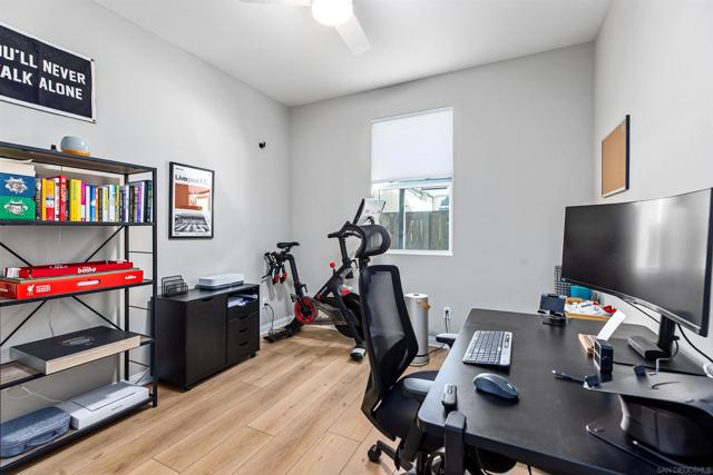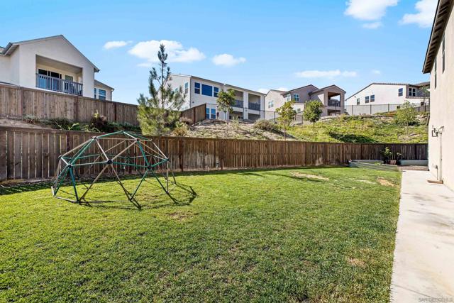 Welcome to 1776 Whitmore Loop — a beautifully upgraded 4-bedroom, 3-bath home located in the vibrant master-planned community of Côta Vera. This residence stands out for its premium corner lot and expansive yard, offering far more outdoor space than most homes in the neighborhood. The open-concept living area flows seamlessly into a modern kitchen with quartz countertops and upgraded flooring throughout. A downstairs bedroom adds flexibility for guests or a home office, while sliding doors from the main living space open directly to a hardscaped patio, perfect for outdoor dining and relaxation. Upstairs, a versatile loft complements the spacious primary suite with its spa-inspired bath, plus two additional bedrooms. Additional features include a paid off solar system, overhead garage storage racks providing extra storage, a reverse osmosis system for drinking water, Culligan whole home water filtration/softener system and 3 guest parking spaces right outside the home - other homes in the neighborhood do not have this. Enjoy the newly opened Lido Swim Club featuring a resort-style pool, jacuzzi, kiddie pool, and gathering spaces just a short stroll away. Ideally located near parks, schools, shopping, and Otay Lakes, this home blends modern comfort with the best of Chula Vista living.