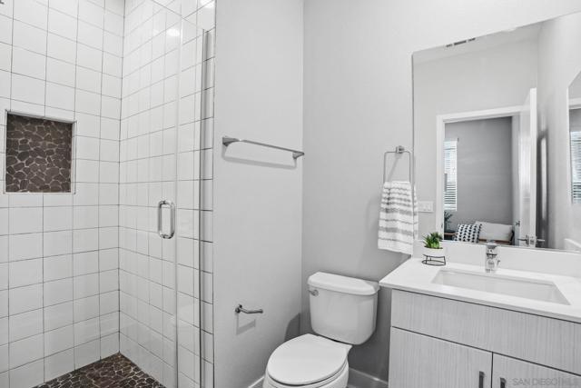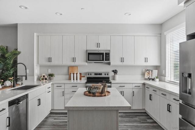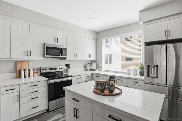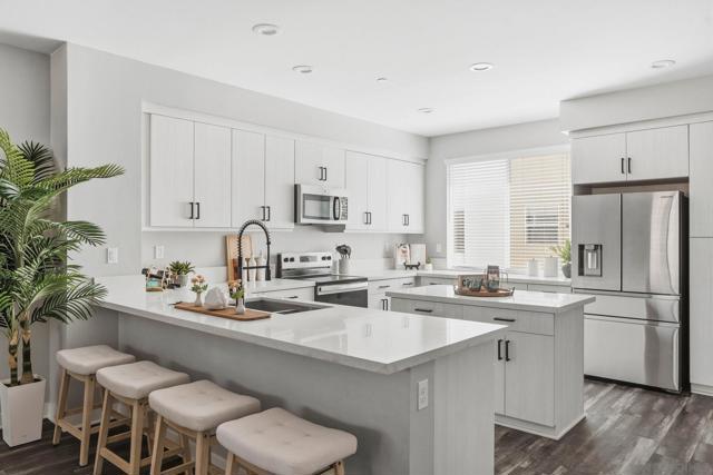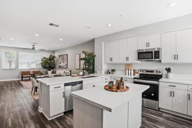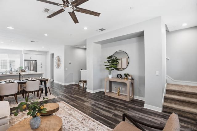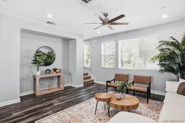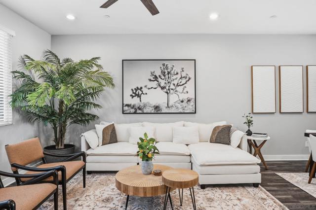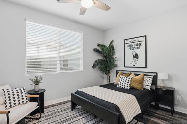 Welcome to this beautifully maintained 4-bedroom, 3.5-bath townhome in the heart of West Chula Vista, just steps from the exciting Bayfront development! Built in 2017, this spacious tri-level home features a versatile layout with a private en-suite bedroom on the main level, perfect for multi-generational living or rental income. Highlights include luxury vinyl plank flooring, freshly painted interiors, an open living/dining area, a bright kitchen ideal for cooking and entertaining, large bedrooms, a full laundry room, paid-off solar, private patio, and a 2-car garage. The community offers resort-style amenities including a pool and BBQ area, with low HOA, no Mello Roos, and VA approval. All just minutes from the Gaylord Pacific Resort, freeways, and everything Chula Vista has to offer!