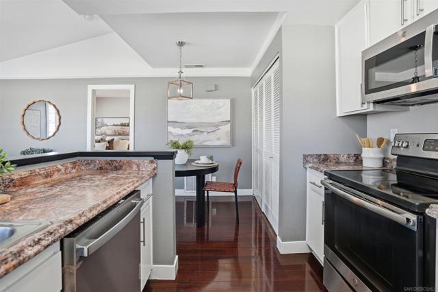 Professional photos coming soon. Welcome to this charming one-bedroom condo located in the highly desired Eastlake Shores community! This beautifully updated upstairs unit features brand-new flooring, a modern kitchen with stylish finishes, and a spacious bedroom with vaulted ceilings that create an open and airy feel. Enjoy the convenience of in-unit laundry, a private balcony perfect for relaxing, and a detached one-car garage for added storage and parking. Take peaceful evening walks around the nearby lake, just a short stroll away. The well-maintained Villa Martinique complex offers amenities, such a clubhouse and a sparkling swimming pool. The community has been recently refreshed with newly painted buildings and redone streets, adding to its appeal. Ideally located near popular restaurants, shops, and easy access to the 125 freeway—this home perfectly combines comfort, convenience, and lifestyle.