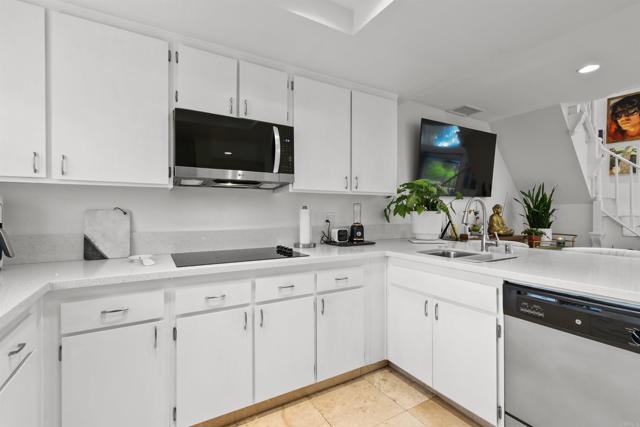 The seller will entertain offers between $495,000-$515,000. Welcome to this bright and stylish two-story condo located in the highly desirable Villa Martinique community of Eastlake Shores. This thoughtfully designed home features soaring ceilings and expansive windows that flood the space with natural light. The open-concept layout includes a spacious living room, dining bar area, and a modern kitchen complete with quartz countertops, white cabinetry, and clean appliances. Step outside to a private patio—perfect for outdoor dining or relaxing. Upstairs, the loft-style bedroom offers an open view of the living area below and includes ample closet space with mirrored doors, a dedicated workspace, and access to a full bathroom with dual sinks. The bathroom also houses an in-unit washer and dryer for added convenience. The property is in a well-maintained community with landscaped grounds and is situated near a scenic lake with walking trails and mountain views. Close to top-rated schools: Eastlake Elementary, Eastlake Middle, and Eastlake High. Minutes from Otay Ranch Town Center, dining, parks, and entertainment. Easy access to SR-125 and I-805 for smooth commuting. Don't miss this opportunity to own a beautifully appointed home in one of Chula Vista’s most sought-after communities!