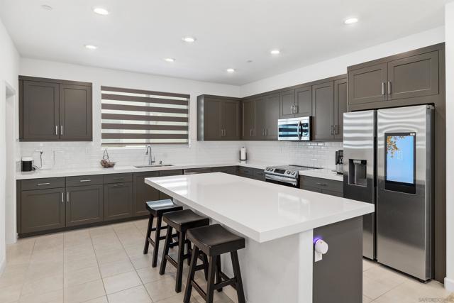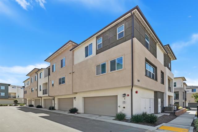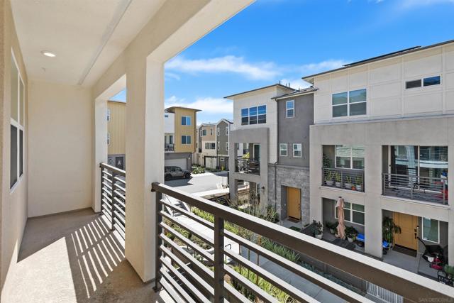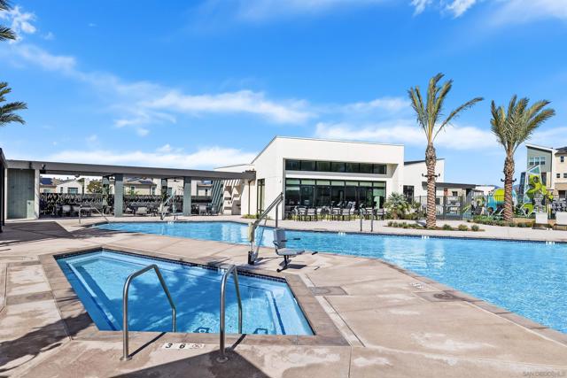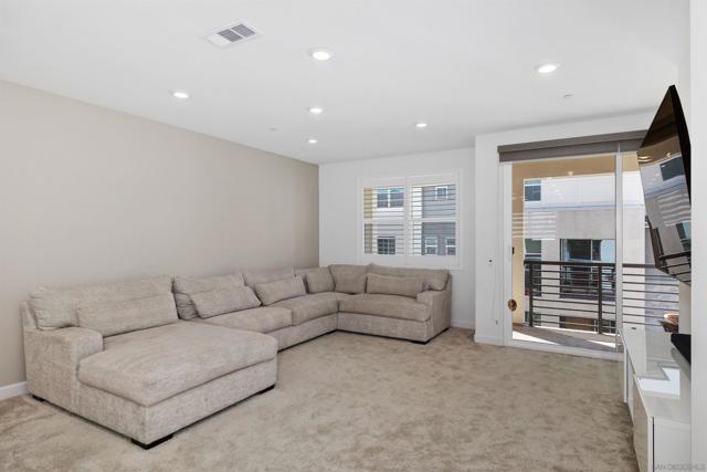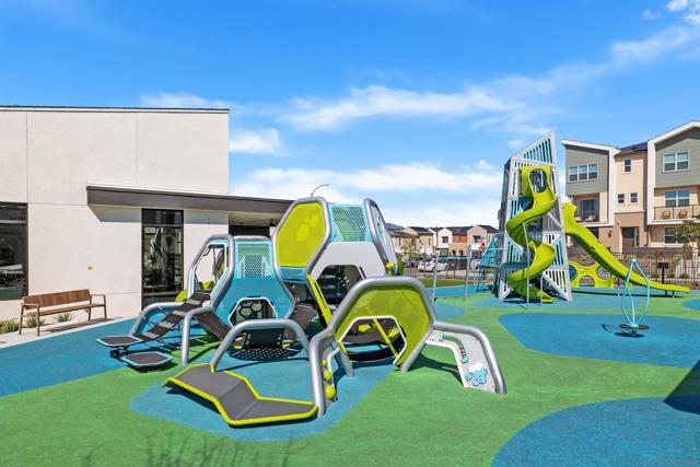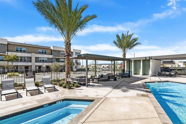 Welcome to this beautifully designed 3-level townhome built in 2024, offering modern living at its finest. The entry level features a private bedroom suite with direct access to the 2-car garage, with a Tesla wall. The open concept main level showcases a spacious living area with abundant natural light, a balcony for outdoor relaxation, and a gourmet kitchen with quartz countertops, stainless steel appliances, and elegant finishes. Designer shutters and dual sheer shades add a touch of style throughout. Upstairs, discover comfortable bedrooms and thoughtful details perfect for today’s lifestyle. Enjoy resort-style community amenities including a sparkling pool, hot tub, pickleball courts, weight room, and playground. A rare opportunity to own a move-in ready home with contemporary upgrades, solar, and exceptional amenities.