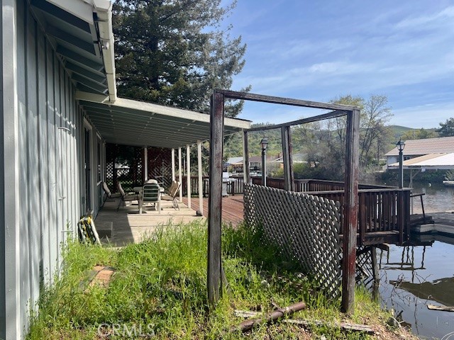 Waterfront, Clearlake Oaks Keys, nice location on wide canal with easy access to lake, 3 bedroom 2 bath open kitchen, dining and living area, brick fireplace, kitchen with breakfast bar and built in farm table/booth, completely furnished, remodeled, extras include a U-shaped covered boat dock!