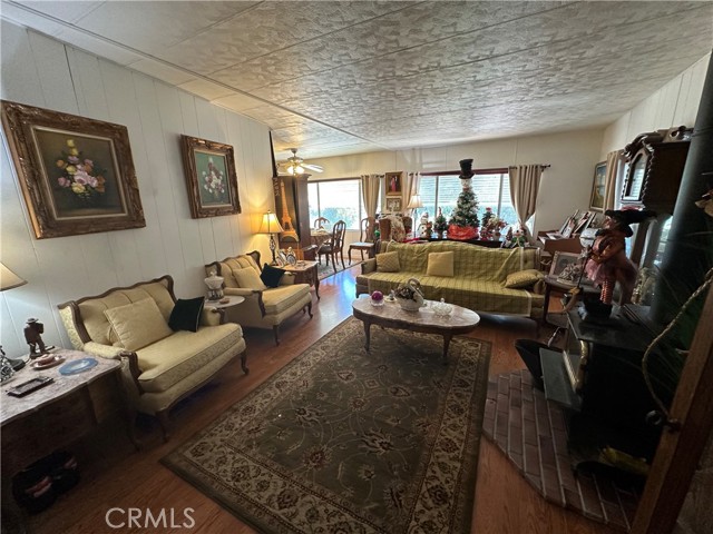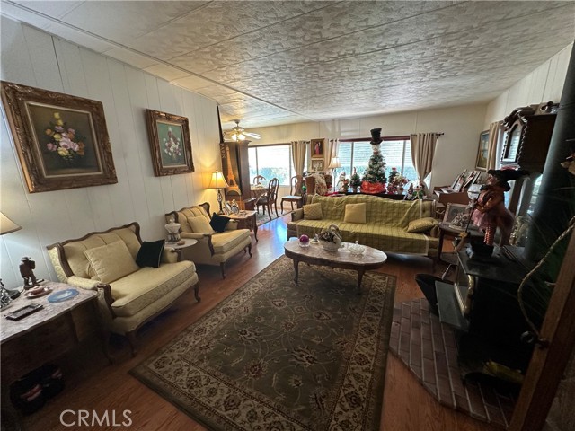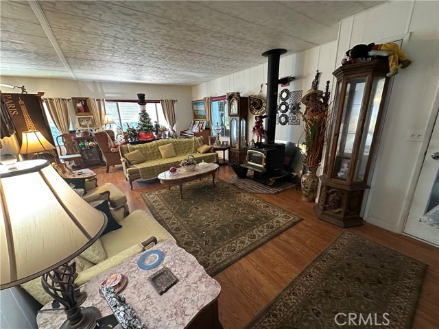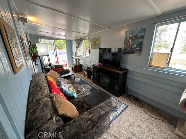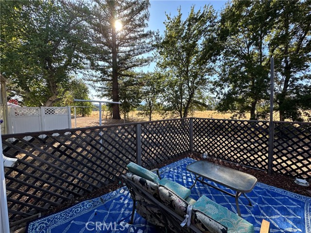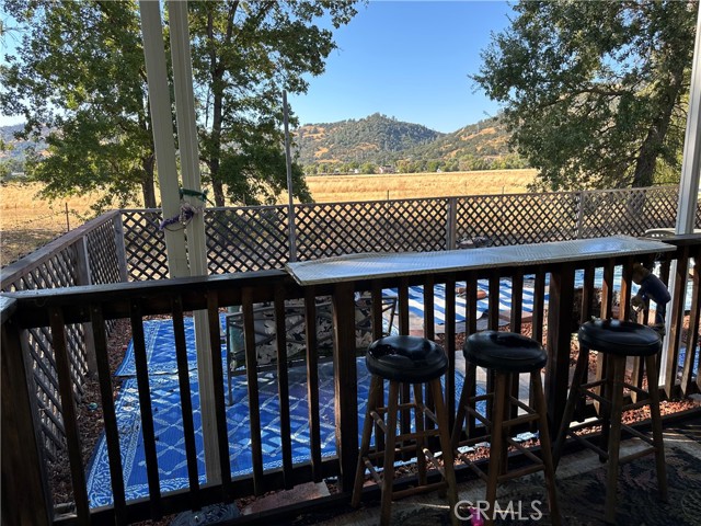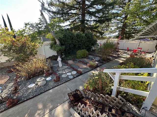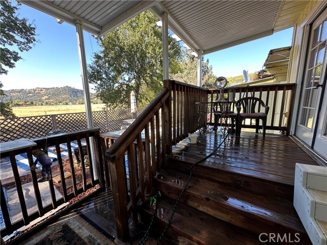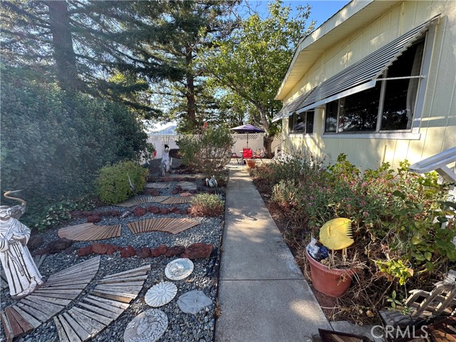 Tranquil park like setting. This manufactured home looks out to open space with views of Mt Konocti. Large open living room with wood burning stove. Large covered deck that leads to the landscape yard on the side. Primary bedroom has a separate deck and entrance. Covered carport with a workshop that has electricity and a heater. Separate storage room. All of this on its own land.