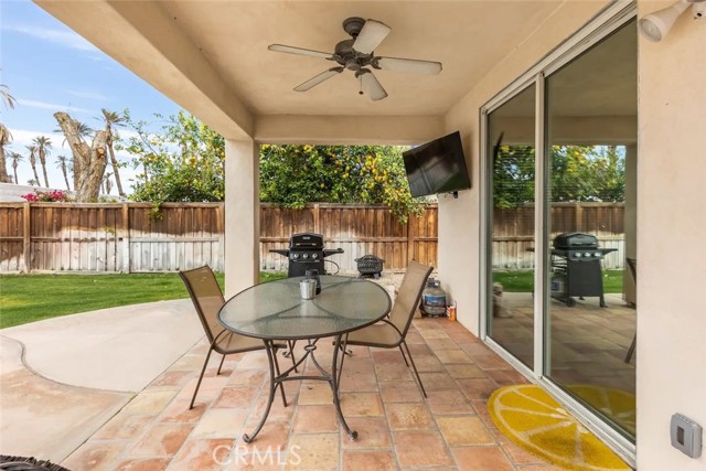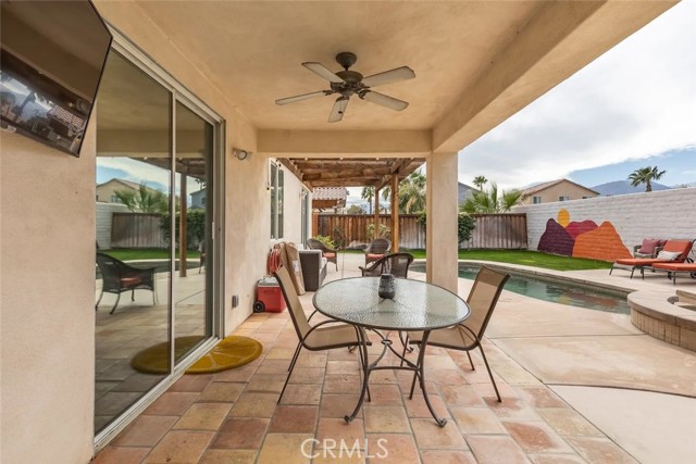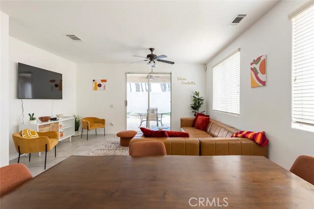 Immaculate and fully furnished Spanish-style retreat in the highly sought-after La Colonia community. This 4-bedroom, 3.5-bath home features an attached casita with a private entrance and bath—perfect for guests or multi-generational living. Inside, soaring ceilings and an open floor plan connect the formal dining area, spacious living room, and a chef-inspired kitchen with granite countertops, gas range, built-in appliances, and a brand-new refrigerator. Comfort is elevated with a new AC system in the main house and a mini-split unit in the casita. Step outside to your private backyard oasis complete with a heated pebble-finish pool and spa, covered patio, and lush landscaping—ideal for relaxing or entertaining. Additional features include a 2-car garage, laundry room, ample parking, no HOA, and short-term rental approval. Centrally located near shopping, dining, golf, and the world-famous festival grounds, this home offers the perfect blend of comfort, style, and convenience.