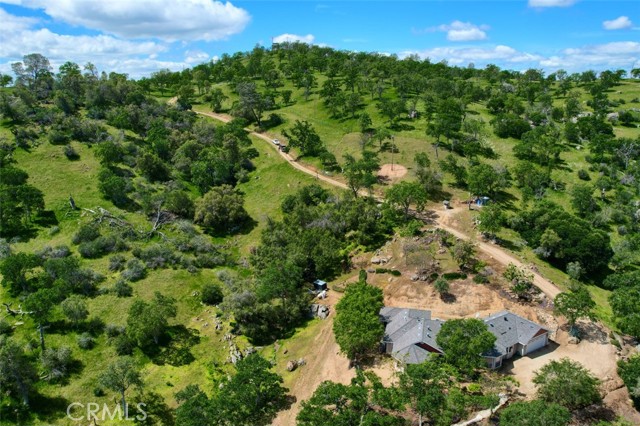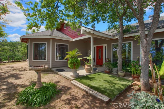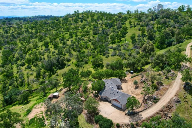 Secluded custom built 3 bedroom, 2 bath home on 20+/- acres! Just 15 minutes to Chukchansi Gold Casino and 30 minutes to Fresno. Lovely front porch greets you but entering this home is a joy. This floor plan has the living room, dining area and kitchen all open to each other with beamed ceiling, ceiling fans and recessed lights. The dining area has fabulous picture windows creating a rounded nook. The kitchen has beautiful wood cabinets, dishwasher, propane stove and a walk-in pantry. The hallway is lined with lots of storage cabinets and drawers. Laundry room includes a sink and cabinets. Bedrooms are very spacious and the guest bath has a charming vanity. The large primary bedroom offers a rounded wall of windows to enjoy the views with ceiling fan, recessed lighting and a gorgeous bathroom with fabulous tile shower. Great 2 car garage with a drive through bay. Wonderful view of distant mountains and your 20+/- acres with majestic Oaks. Perfect for your horses or your 4-H or FFA animals with fenced pens and shelters. There is minor work needed to obtain the final inspection for occupancy cert.