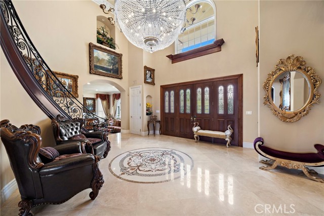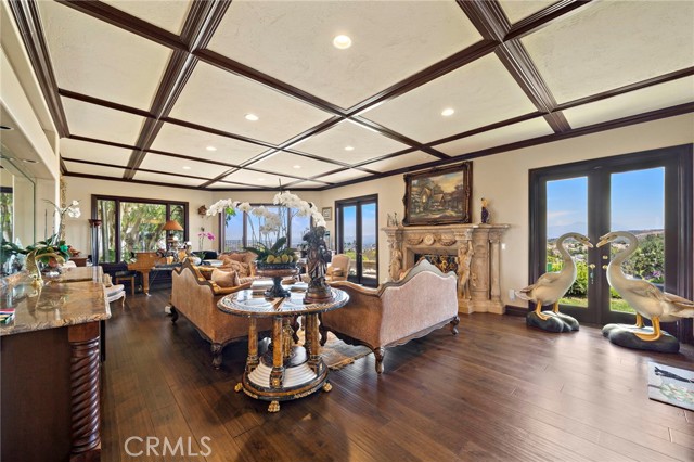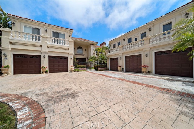 Discover the grandeur and nostalgia of the Guilded age. The magnificent bespoke estate crowns the top of prestigious Spyglass Hill, on the most coveted cul-de-suc of the exclusive Custom collection of properties. Positioned to capture panoramic 200 degree views, the carefully curated, privately gated compound awaits for those with discriminating taste. Main level foyer impresses with the stunning iron framed circular staircase, lit with sparkles of the grand crystal chandelier and artfully inlaid stone floors. Generously proportioned, easy flowing formal living and family rooms are enriched by custom grand marble fireplaces. In addition, chef inspired kitchen, formal dining room and the office with built-ins complete the main level. Main house hosts six en-suite bedrooms, which include two luxurious primary suites commanding infinite mesmerizing sparkling night views. Five car garage suits all your autos accordingly. Completely separate guest house accommodates visitors and live-ins providing all necessities and comfort, featuring a bedroom suite, a kitchen, direct separate garage access, laundry room and a sitting room completed with a beautiful fireplace. Spyglass Hill proximity to all local notables, world class shopping, gourmet restaurants, pristine beaches, Performing Arts Center, commute arteries, including John Wayne airport, makes it one of the most desirable locations in Newport Beach.