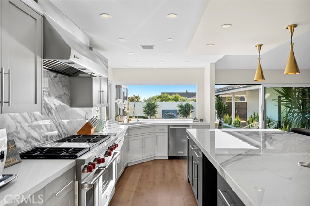 4000 Topside is a beautifully remodeled single-level home that exudes elegance and functionality in every detail. The spacious, chef-inspired kitchen features commercial-grade refrigerators and a convenient pass-through to the outdoor entertaining area, creating a seamless flow for both daily living and special gatherings. The home’s airy layout is enhanced by vaulted ceilings, filling the space with natural light. The primary suite has been expanded to create a true sanctuary, complete with a spa-like bathroom and an oversized walk-in closet. An added highlight is the fourth bedroom, artfully reimagined as a walk-in wine room, perfect for storing and displaying your collection. Two additional bedrooms offer comfort and privacy, while the interior laundry room and finished three-car garage add convenience to this thoughtfully designed home. Perfectly blending coastal charm with modern amenities, 4000 Topside is more than a residence—it’s a stunning Corona del Mar retreat for those who appreciate style, comfort, and an exceptional attention to detail.
