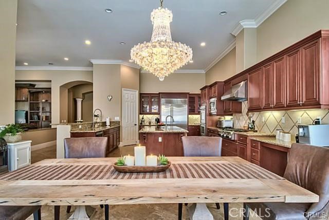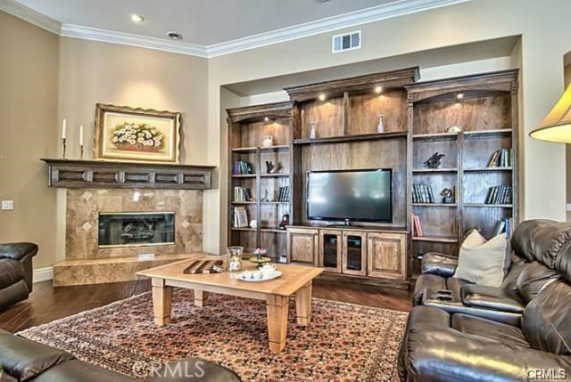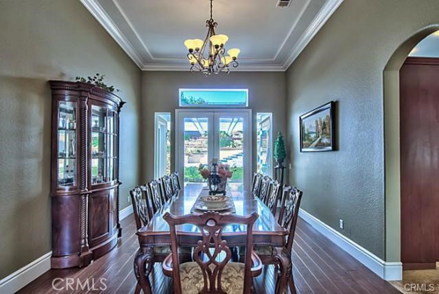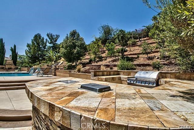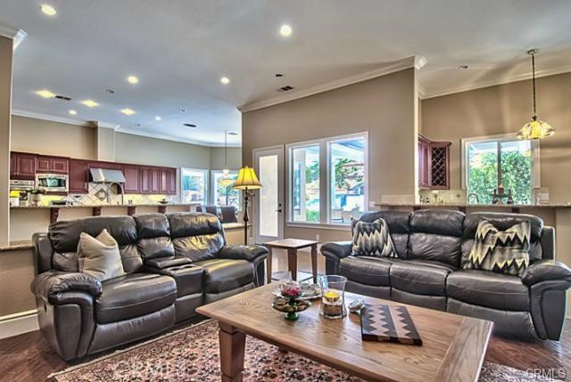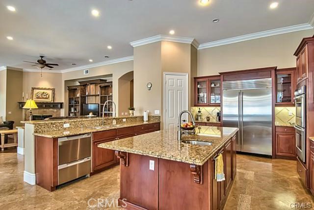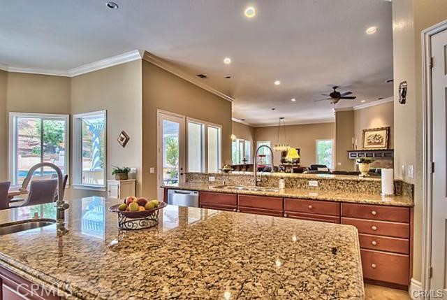 Gorgeous Tuscan Style Amber hill Estate home is located above the beautiful of South Corona. SOLAR-Powered, This prestigious home features 5 Bedrooms & 4.2 Bathrooms & 4 car garage. The front entry welcomes you into a courtyard like setting & features a 2 tier water fountain with a iron gate front entry. Upon entering the home your eyes are drawn to the high ceilings & columns that surround the entries foyer. Crown molding and trey vaulted ceilings throughout the entire home. Retreat Master bedroom w/fireplace. Stunning formal living room and dining room, custom fireplace, wood flooring, w/ travertine accents. Open concept cookers kitchen/ dining room/ family room/ game room/ & bar has a full view of the backyard & is perfect for entertaining. Kitchen has all stainless steel appliances, double ovens, stove top w/grill, double dishwashers, sub zero refrigerator, granite counter tops, oversized center island w/prep sink, pantry, w/elegant back splash. Family room has a gorgeous rustic built-in entertainment/bookcase unit & fireplace. Separate grand office room w/French doors. Breathtaking backyard with a Salt water pool, waterfall, and in ground spa. Large covered private patio with fire pit, fireplace, BBQ & sitting area. This luxurious home is a must see!