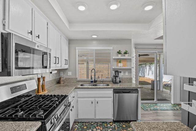 Beautiful Move-In Ready Home on a Quiet Cul-de-Sac in Horsethief Canyon RanchTucked away on a quiet cul-de-sac in the desirable Horsethief Canyon Ranch community, this 3-bedroom, 3-bathroom home combines modern updates with inviting living spaces. The open floor plan showcases vaulted ceilings, a dual fireplace connecting the living and family rooms, stylish LVT flooring in the main areas, fresh carpet in the bedrooms, and upgraded plantation shutters.The kitchen is well-appointed with granite countertops, stainless steel appliances, and a scenic backyard view. The primary suite features vaulted ceilings, a spacious closet, and a private bath, while two additional bedrooms are filled with natural light and share a beautiful bathroom. Notable upgrades include a new split system for efficient heating and cooling, a whole-home water softener, and an instant purified water system. A convenient 2-car garage provides secure parking and extra storage.The spacious backyard offers plenty of room to relax, entertain, or even add a pool. For buyers seeking a truly turnkey experience, the furniture is also available for purchase as a separate cash deal outside of escrow.Residents of Horsethief Canyon Ranch enjoy resort-style amenities such as two Olympic-sized pools, a clubhouse, fitness center, multiple parks, a dog park, and courts for tennis, basketball, baseball, and soccer. With no Mello Roos, low taxes, and one of the most attractive price points for a single-family home in Corona, this property presents an excellent opportunity.