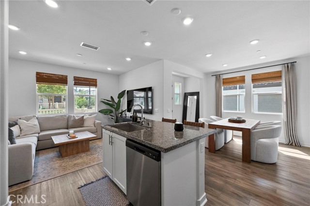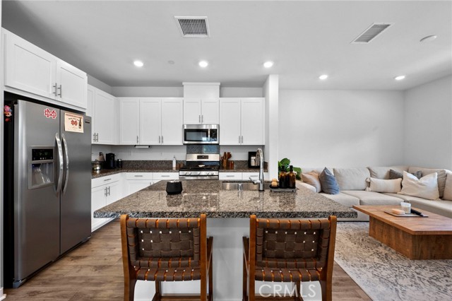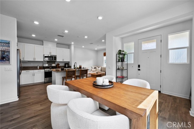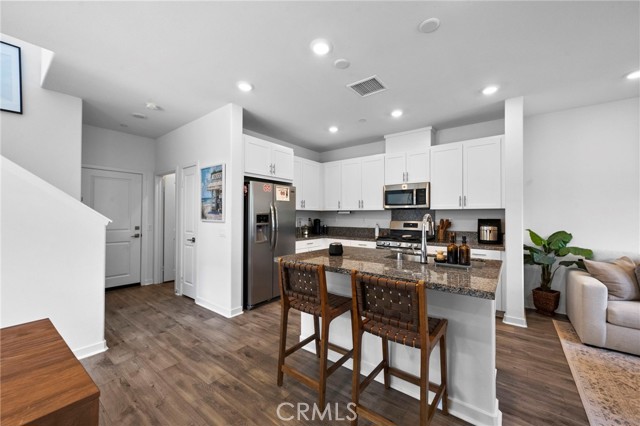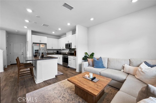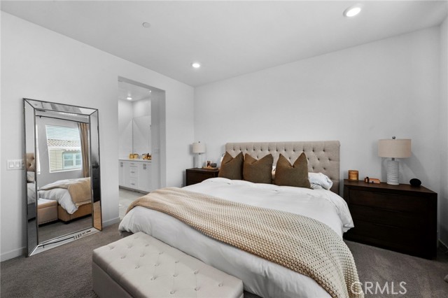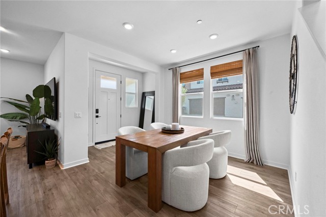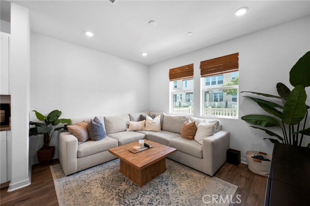Welcome to 3959 Lavine Way #101, nestled in South Corona’s Averly at Bedford by Tri Pointe Homes where modern living meets scenic serenity. This end-corner residence offers the perfect blend of style, comfort, and efficiency with paid-off solar, ensuring energy savings from day one. Set against the breathtaking Santa Ana Mountains, this Farmhouse-style home exudes warmth with wide-plank laminate flooring, upgraded carpet, and White Shaker cabinetry throughout. The open-concept design creates a bright and spacious atmosphere, enhanced by recessed lighting and smart-home features. Enjoy seamless control of your locks, thermostats, lighting, and garage via HomeSmart Technology, supported by a Mesh WiFi system for full-home connectivity. The EV-charging ready garage adds convenience for eco-friendly living. Located within the gated Bedford Master Plan, residents have access to resort-style amenities including The Hudson House clubhouse, pools, spa, BBQ areas, and community events. Just minutes from Bedford Marketplace, local dining, and entertainment, this home offers both tranquility and accessibility. Experience a connected, sustainable lifestyle surrounded by natural beauty — welcome home to Bedford Community.