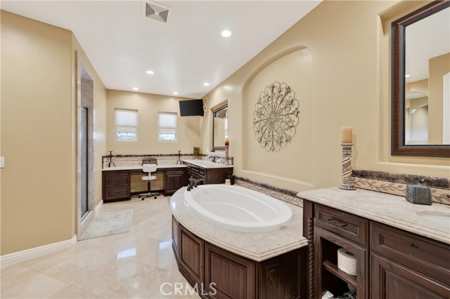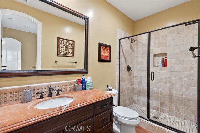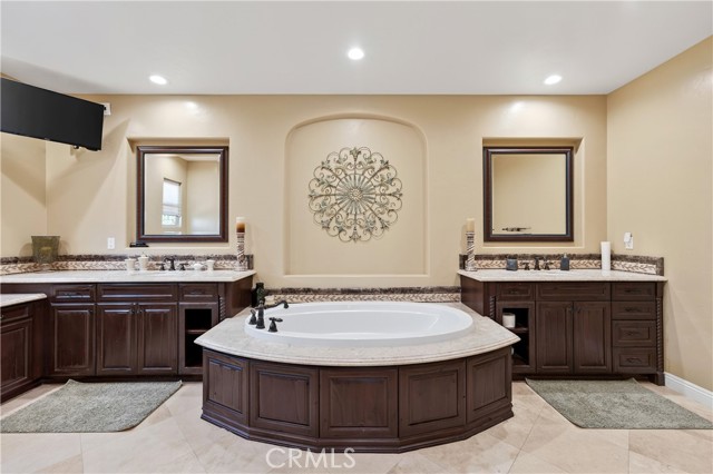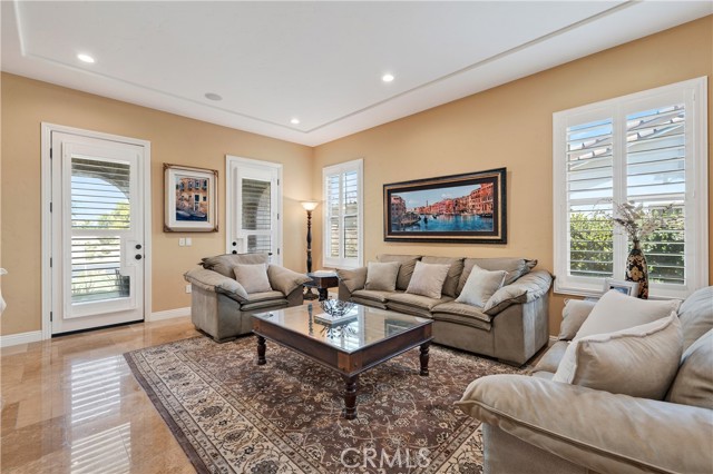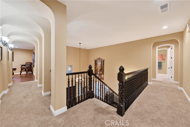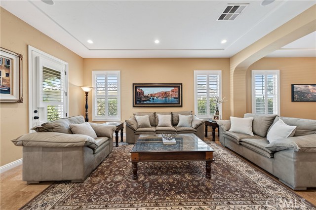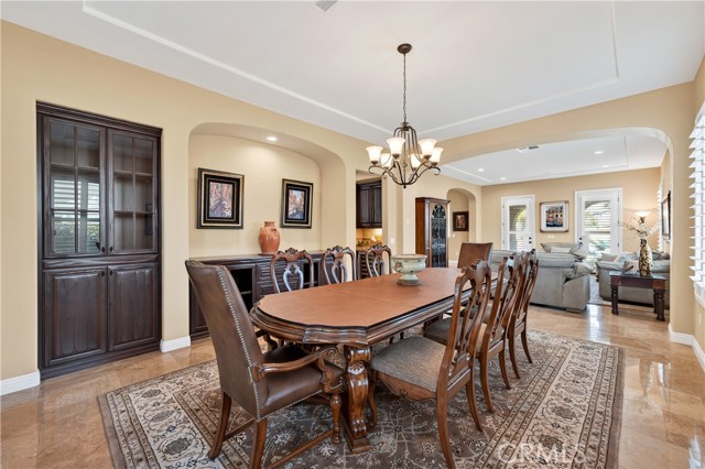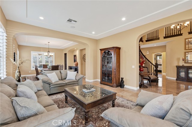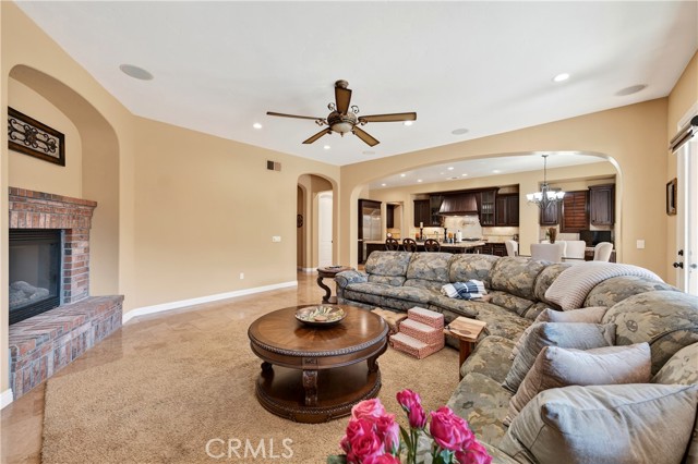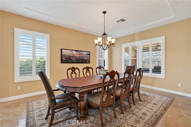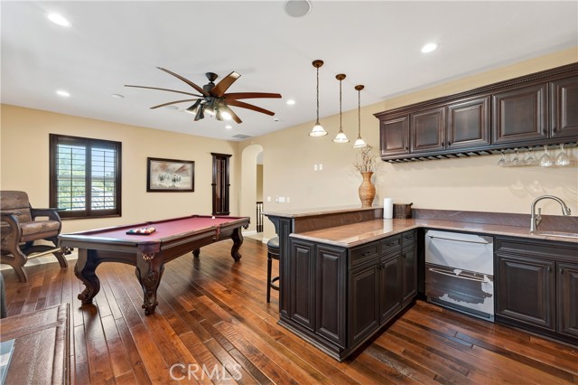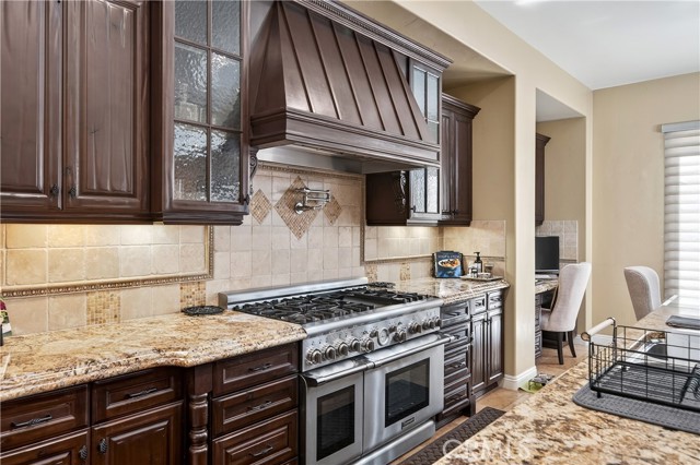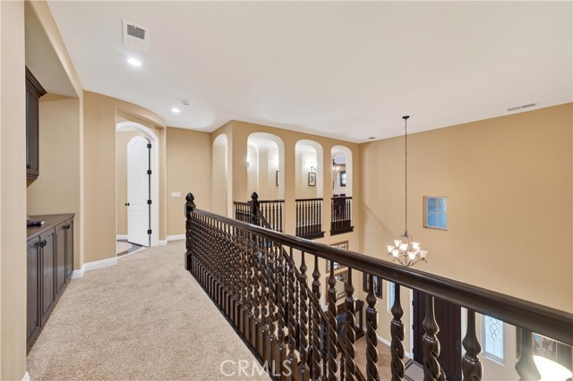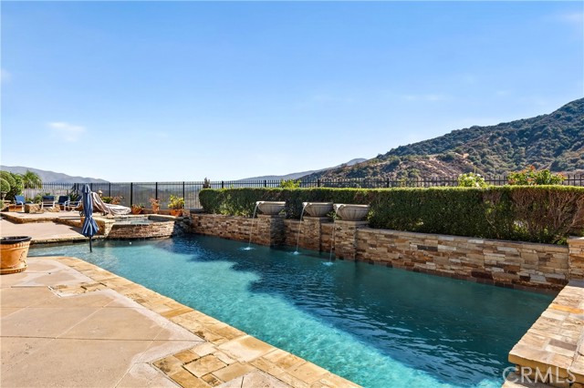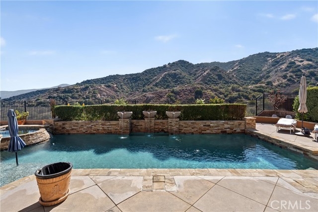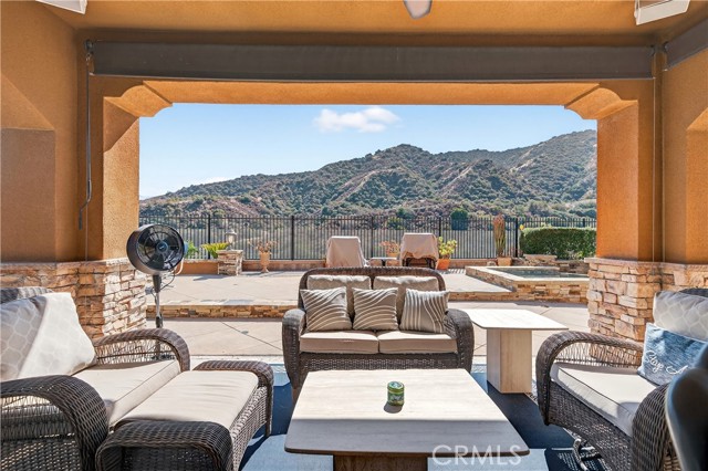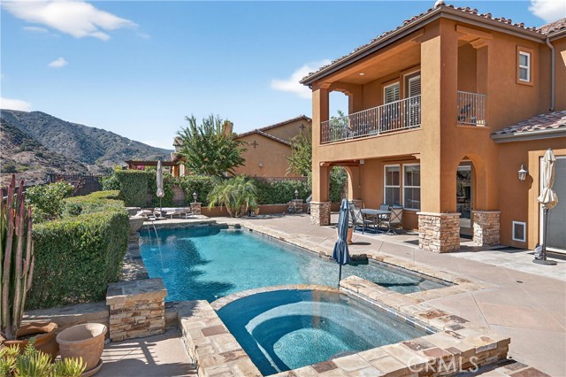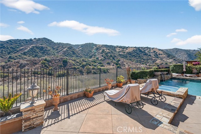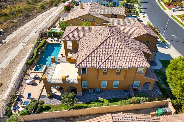 Located in the prestigious Retreat Community, this stunning K&B Luxury highly sought home features views of beautiful Cleveland national forest. This spacious open floor plan, with a gourmet kitchen and large pantry, featuring 5 spacious bed rooms, 4.5 bath rooms, dual walk in his and her closets. An entertainer paradise, the back yard includes a private heated pool and spa, natural gas fire pit and multiple areas for relaxing or hosting guest. Has a covered patio with a outside bar. The primary suite complete with a private balcony, over looking the Cleveland National Forest, and total privacy. A cozy family room off the kitchen with a beautiful brick fireplace. Additional highlights include window coverings throughout, plantation shutters and a tandem 3 car garage. The perks of this amazing location is minutes away from Dos-Lagos restaurants, theaters, shopping and entertainment. The Retreat community also features a pool, parks, and scenic hiking trails for out door enjoyment. This beautiful Luxury home is amazing, come by and see for yourself.