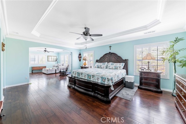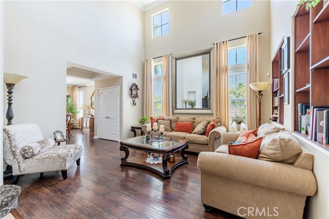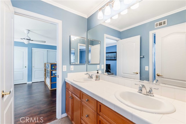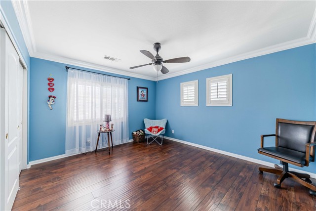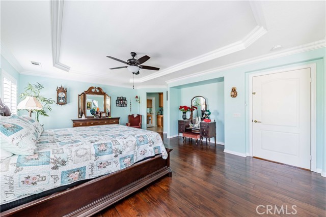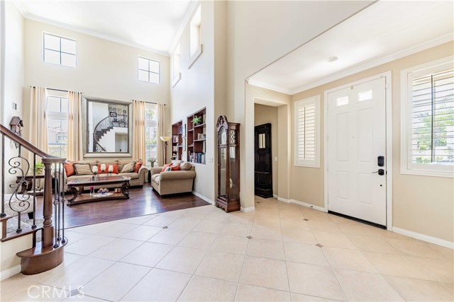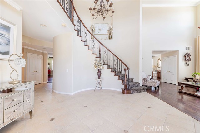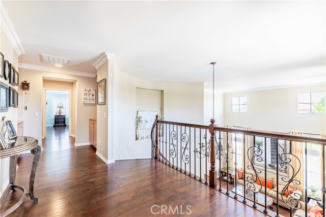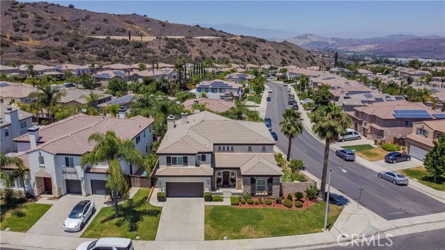 GORGEOUS South Corona Montecito Ranch Home, Ready to move in, Turn Key. GREAT LOCATION. LOW HOA's and LOW taxes. This BEAUTIFUL Home is near Dos Logos and is located at the foot of the Cleveland National Forest with Orange Groves and Avocado Trees. This home is the favorite plan 1 in our community. Corner lot featuring a 3 car Tandem Garage and a Courtyard. The entry has a Dramatic ELEGANT Spiral wrought iron Staircase. Featuring a Large Open floor plan, Spacious Granite Kitchen with a breakfast bar, newer appliances, walk in Pantry & Double Ovens. LARGE GREAT ROOM with fireplace, Upgraded flooring and neutral paint. Downstairs bedroom with a private bathroom. Formal separate Living Room and Dining for your entertaining needs and a powder room for guests. EXTRA LARGE PRIMARY BEDROOM SUITE WITH RETREAT & Fireplace that leads to the balcony to enjoy the Beautiful Mountain views. Primary features his and hers separate walk-in closets. Primary bath has Jetted Tub, dual sinks & separate Vanity area. LARGE-SIZE BEDROOMS with Jack & Jill Bathroom. Upstairs Laundry includes a sink. Backyard has 2 patio's, storage shed and fruit trees: orange, peach, guava, green apples, fig, pomegranate, persimmons, loquats and grapevines. Nearby park with basketball & baseball diamond. Top Rated Elementary School in the District. Nearby parks with playground, basketball and baseball diamond. THIS HOME IS A MUST SEE, MUST HAVE! Gorgeous ! Very well taken care of, will not disappoint. CLEAN,CLEAN, CLEAN. Perfect for extended family such as Grandparents or Nanny to live downstairs. Low HOA, Lower taxes. Very nice neighborhood.