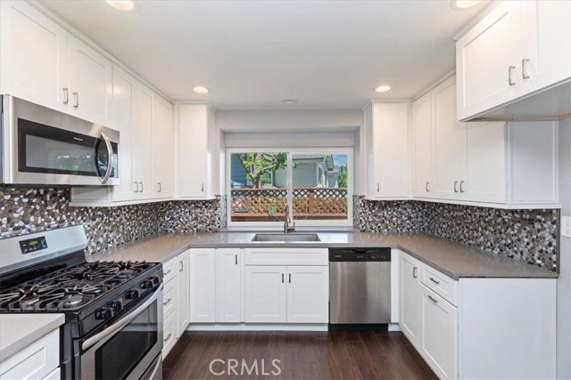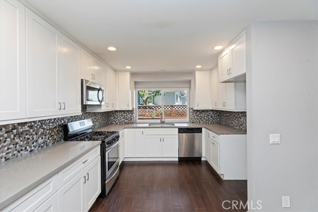 POSITIVELY FANTASTIC TURNKEY HOME here in the highly sought after GALLERY complex in Corona! Two car attached garage with full driveway capable of accommodating two vehicles. The most impressive upgrades to this home are the KITCHEN and MASTER BATHROOM, NO expense spared. This home features a good size living room with vaulted ceilings and a fancy sliding door that slides opens from the center outwards onto a private back patio. Upstairs you'll find the primary bedroom has vaulted ceilings and an awesome walk-in closet. Secondary bedroom also has vaulted ceilings and its own bathroom with tub/shower combo and linen storage. Water filtration system, private laundry hook ups in the garage, AND washer and dryer included in sale. This community offers a pool, spa, BBQ, walking paths and greenbelts. Home is centrally located close to schools, parks, restaurants and shopping.