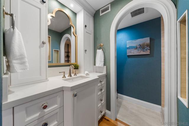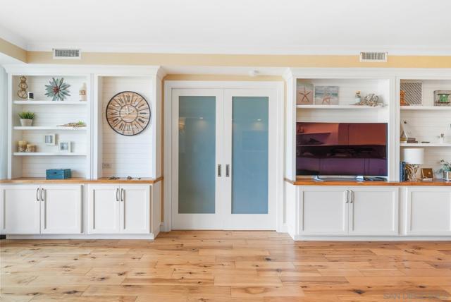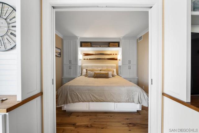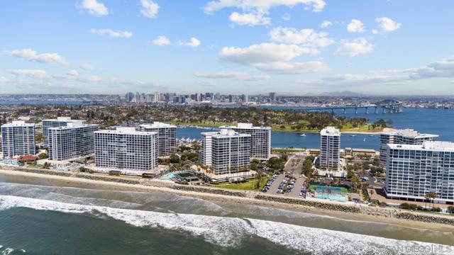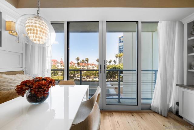 Located just minutes from the sand, this turnkey, fully furnished studio in coveted La Sierra Tower features a fresh, beach aesthetic. is beautifully Renovated by Clark Construction, enjoy breathtaking views of the Hotel Del Coronado with thoughtful upgrades that include new windows, wood floors, crown molding, and custom built-ins throughout, offering both beauty and function. The kitchen is a standout with high-end Bosch and Viking appliances, custom cabinetry, and a breakfast bar. A spacious walk-in closet, dining nook, and elegant bath with walk-in shower round out this coastal retreat. Move right in and start experiencing The Shores lifestyle!