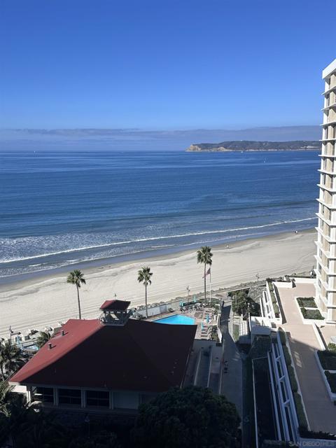 Experience the trifecta of views from this highly desirable one-bedroom, one-bath residence at the Shores. From every angle, enjoy sweeping panoramas of the Pacific Ocean, San Diego Bay and skyline, and the iconic Hotel Del Coronado. This updated home blends comfort and opportunity—move-in ready now, yet offering the perfect canvas for your personal touches. Light-filled interiors and floor-to-ceiling windows capture endless blue horizons, city lights, and sunsets. The Coronado Shores lifestyle includes four oceanfront pools, tennis and pickleball courts, fitness center, and the private Beach Club—set directly on the sand.