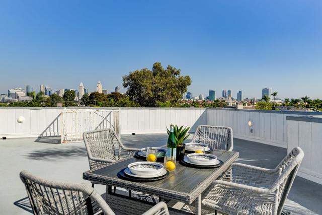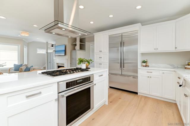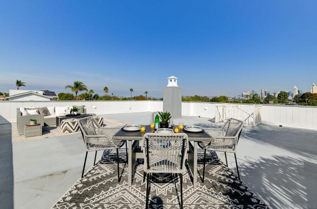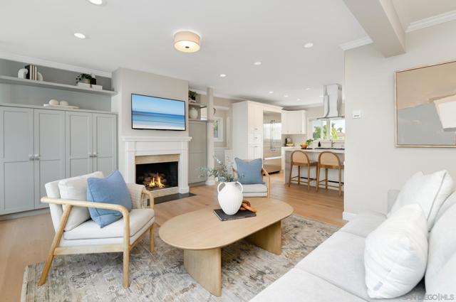 Stunning, remodeled Coronado corner-lot residence w/ a panoramic rooftop terrace. Brand-new flooring throughout, upgraded kitchen features quartz countertops, custom cabinetry & Thermidor appliances. Spacious, "great-room" style living area w/ cozy fireplace, custom built-ins, custom lighting & crown molding. Convenient home office/additional bedroom downstairs w/ spacious laundry room providing ample storage for the home. Primary suite features dual walk-in closets, a sitting room w/ easterly downtown & Coronado bridge views, dual vanity sinks & newly remodeled shower w/ upgraded fixtures & lighting. Spacious guest bedrooms. Awesome rooftop deck features ~1000 square feet of entertainment space offering panoramic views of the bay, downtown & bridge to the west north & east. Nothing to do but move right in - see it today before it goes away! Other important features & upgrades throughout the house include upgraded vinyl windows, custom blinds throughout, recessed LED lighting in every room, Crown molding, custom closet systems for all bedrooms, farm-style door at entry, Brilliant new flooring. Ample storage throughout. Much of the home was just recently remodeled, including the primary bathroom shower, kitchen and laundry room areas. Gas electric and water serviced to the rooftop deck for your convenience. Just imagine the epic parties, BBQs and get-togethers to be had! 2 off street parking spaces (driveway), private & secure front and back yard spaces conjure tropical inspiration for landscaping with island vibes and feature several mature fruiting trees (apple, banana, fig, grape, citrus, avocado & peach) w/ easy maintenance Auto sprinklers and artificial turf for your convenience. Location is walking distance to all that Coronado has to offer including the local highly rated schools, shops, restaurants, the bay and local parks and conveniences. Easy freeway access in and out of the island at this specific location. Minutes to the world class Hotel Del Coronado resort, Coronado community center and Coronado Beach.
