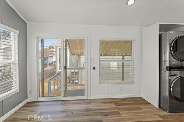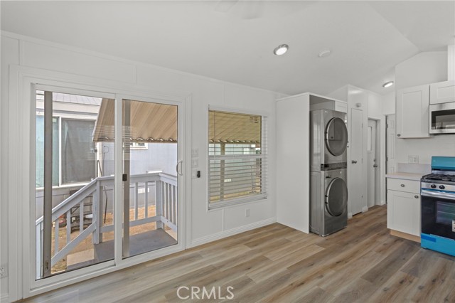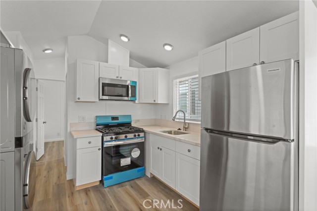 Completely Renovated & Move-In Ready! This beautifully updated 1 bedroom, 1 bathroom home feels brand new from the floors up. Featuring stylish white shaker cabinets, sleek Corian countertops, and a deep single-basin sink with a high-arc faucet. All kitchen appliances are included. Enjoy the convenience of an in-unit washer and dryer. Comfort is covered year-round with a modern mini-split heating and cooling system. Step outside to a cozy covered patio—perfect for relaxing or entertaining. Ideally located near major freeways, shopping centers, and entertainment venues. Community amenities include a sparkling pool and well-maintained grounds. A must-see!