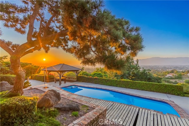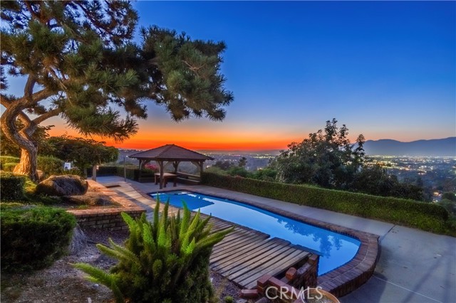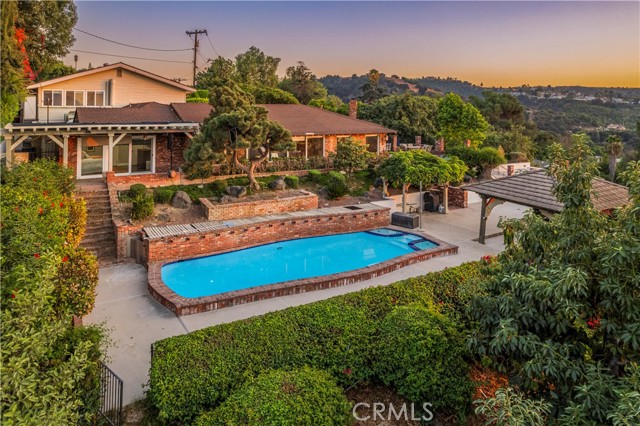 VIEW VIEW VIEW!! This private gated home offers ONE OF THE BEST VIEWS in the neighborhood. It has 180 Degrees of Panoramic city light & mountains view that extends beyond the Los Angeles skyline. It features 4BR/ 3BA (master suite in downstairs) plus huge bonus room and large wet bar. Very bright and open living room w/ fireplace. Fully remodeled kitchen and all the bathrooms. Master suite with large sliding door is overlooking the panoramic view. You will find the amazing Park-like backyard w/newly upgraded pool/spa and deck to enjoy the spectacular city lights, sunrise, sunsets & mountains vie. Lots of fruit trees such as huge avocado trees and citrus trees and gazebo. Room for horse barn, and ADU. Only minutes drive to the award winning Schools, park, shopping center, golf course/ country club and Cal-Poly and MT San Antonio College. Horse property.