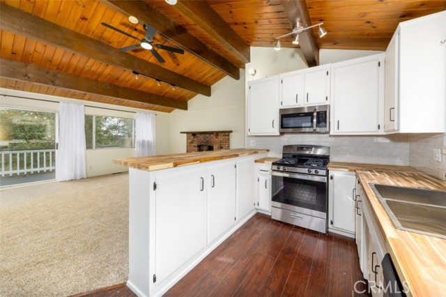 Enjoy nature at its best in this cozy mountain home three stories with a separate entrance to the basement, converted to a 1bed 1bath. This lovely property has a four-car driveway, 1 mile from the Crestline Village and Lake Gregory. New paint inside and out, upstairs baths renovated, kitchen renovated with all new appliances. Vaulted ceiling in the great room with full-length deck and forest view. This property is nestled in a friendly, quiet, small-town village where fishing is the great past time. Entertain on those cold crispy evenings by the fireplace in the great-room. The gally kitchen has been recently renovated, along with upstairs baths. A separate basement unit can be used for guests or rented out to supplement costs making this property ideal for family and short term rentals. Many accessible entertainment properties nearby in all directions.