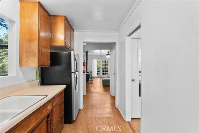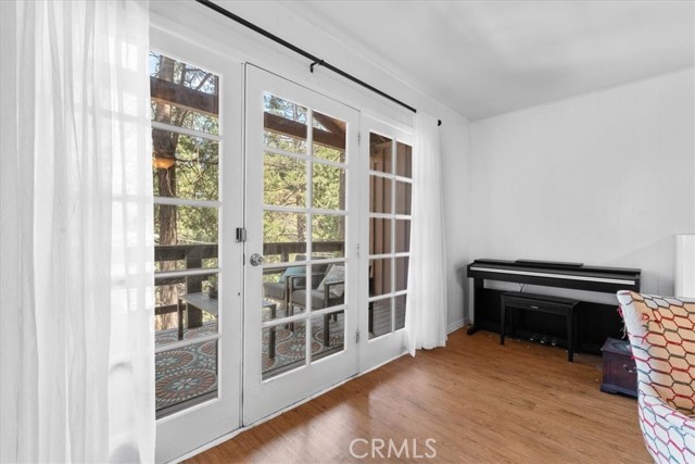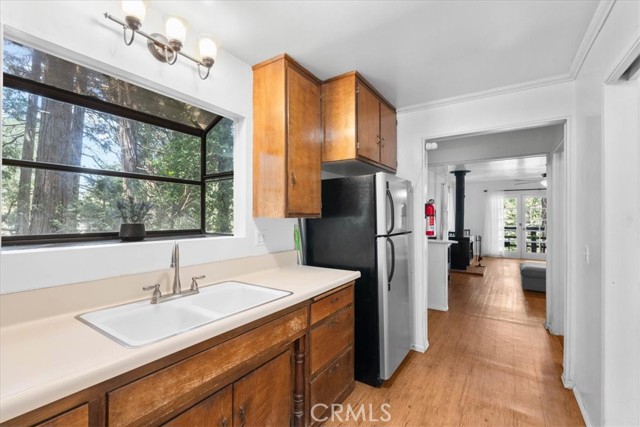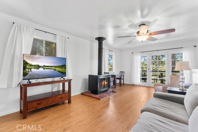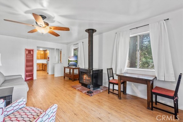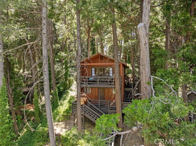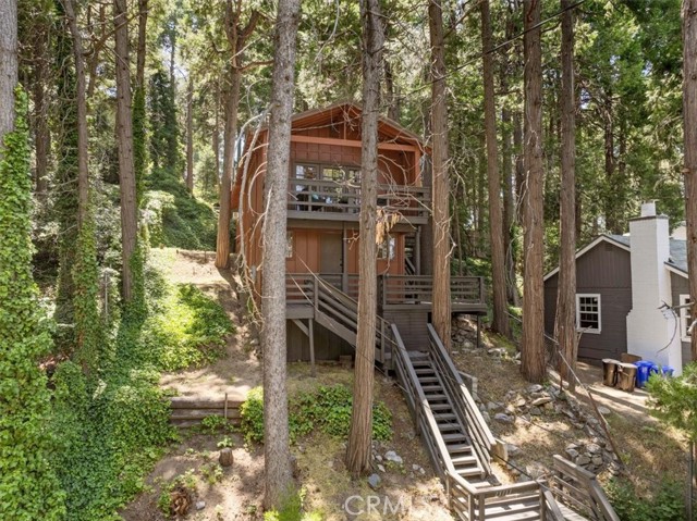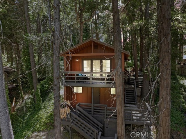 **WELCOME TO THE BIRD HOUSE! Charming Mountain Retreat with Stunning Views in Crestline** Step into your own serene and cozy escape in the heart of the Crestline mountains. This charming multi-level home offers comfort, character, and breathtaking views—perfect as a full-time residence, vacation getaway, or investment property. The first level welcomes you with a private bedroom and convenient access to the basement. Upstairs, you'll find a bright and open living space featuring a second bedroom, a beautifully remodeled bathroom, a well-equipped kitchen with newer stainless steel appliances, and a warm, inviting living room centered around a wood-burning stove. Step out onto the balcony and take in the sweeping mountain views—an ideal spot for morning coffee or sunset relaxation. Set on a large, private lot surrounded by towering trees, this home includes its own walking trails—perfect for enjoying the fresh forest air, peaceful nature strolls, or morning meditation. A spacious deck provides additional space to unwind or entertain while taking in the beauty of the outdoors. Ceiling fans throughout the home provide comfort year-round, and the wood stove adds a cozy touch for crisp mountain evenings. Located just minutes from Lake Gregory and the heart of town, you’ll enjoy easy access to local shopping, dining, and year-round recreation. From hiking, fishing, swimming, and paddle boarding in the warmer months to skiing and snowboarding in the winter, Crestline is a four-season destination. Don’t miss community favorites like Jubilee Days, the 4th of July parade, and weekly farmers markets with live music. Whether you're seeking a peaceful retreat or an exciting investment, this mountain gem truly checks all the boxes—including front-row seats to the Fourth of July fireworks over Lake Gregory!