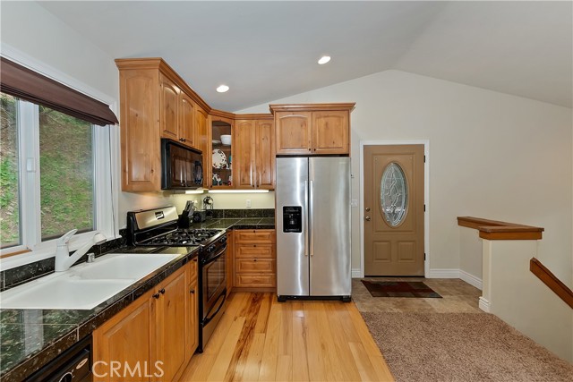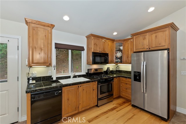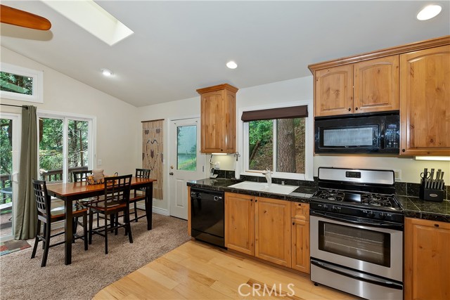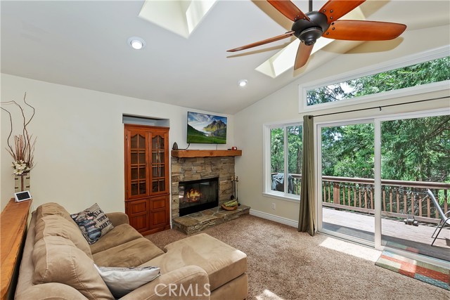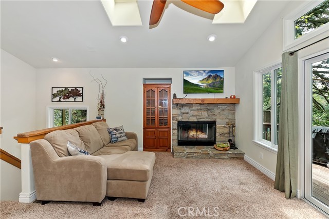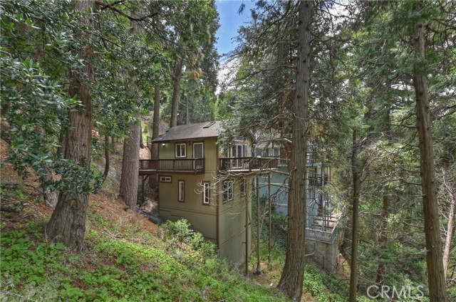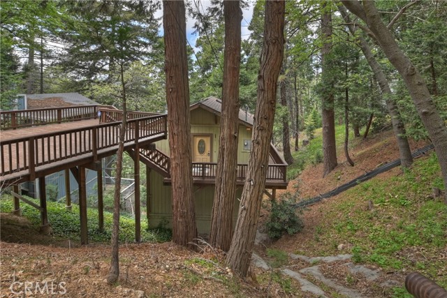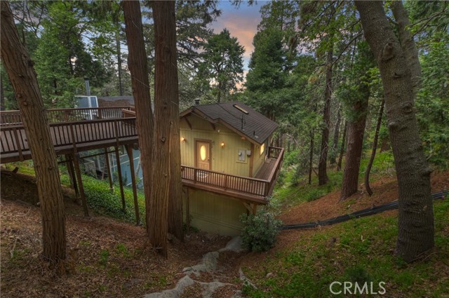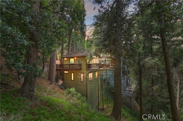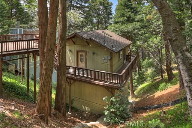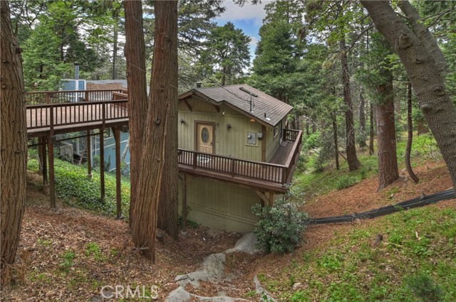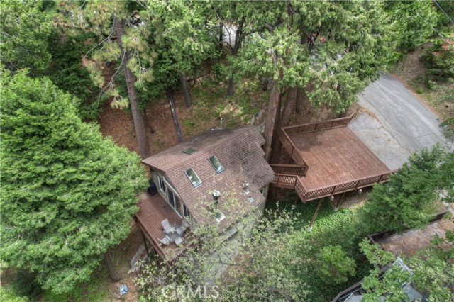 Newer construction (2008) home featuring great room open floorplan with wall of windows to experience the lush woodsy setting! Nicely perched on over 1/3 acre (approx. 16,672 SQ FT) of lush pines, cedars and oaks with a serene park-like setting. Beautiful kitchen with with knotty alder cabinets, granite tiled countertops, wood floors and stainless steel appliances. Added features include gorgeous stack stone fireplace, built in entertainment center, dual pane windows and 3 skylights. Main level also has front, side and rear decks to enjoy nature from. Large parking deck in front of the home for convenient access. Lower level includes large bedroom with high beamed ceilings plus en suite bathroom , guest bedroom also with high beamed ceilings, laundry closet with stackable washer dryer included. Below the home is a large unfinished open basement area for future expansion potential, more bedrooms, an ADU or family room. Home is sold turnkey furnished as a courtesy for the lucky Buyer. Don't miss this unique opportunity, make your offer today!