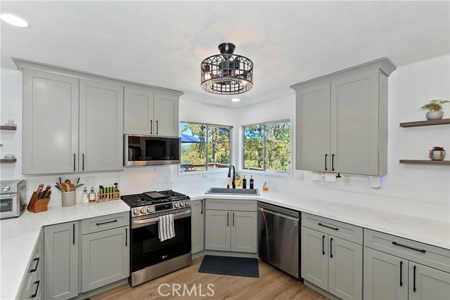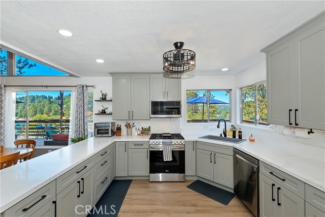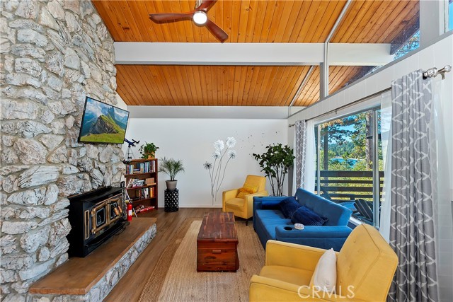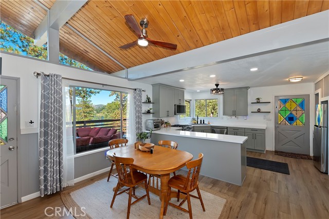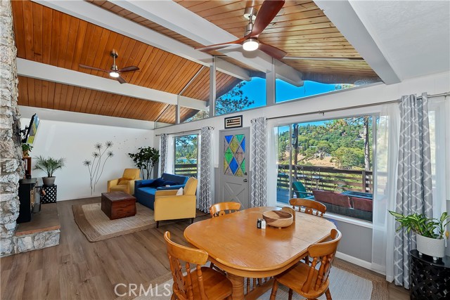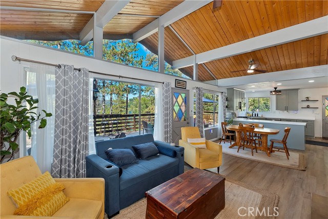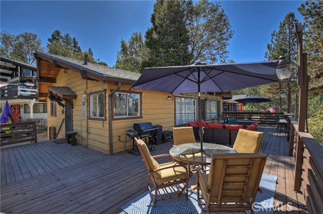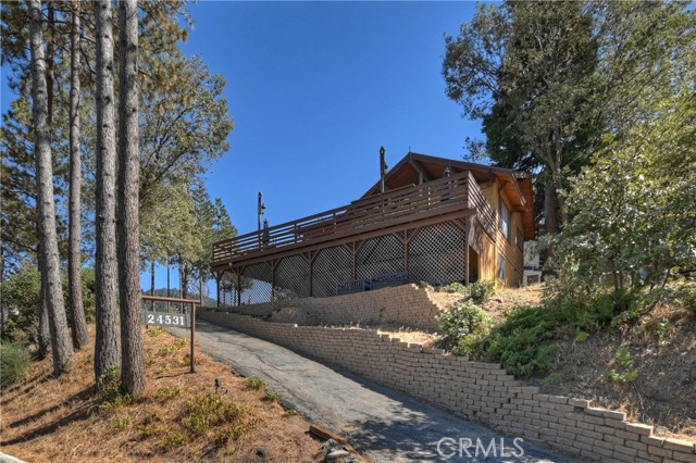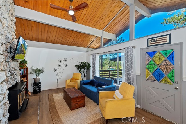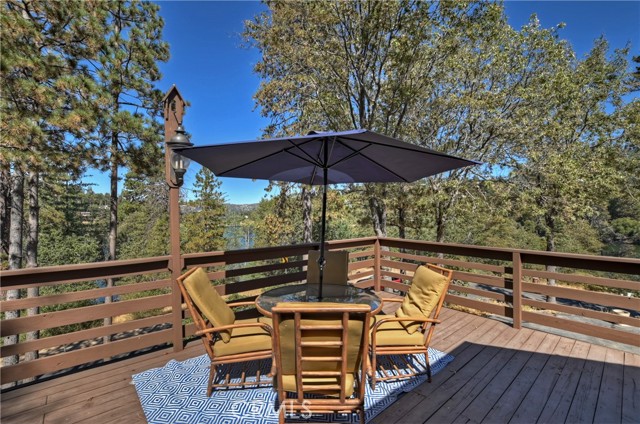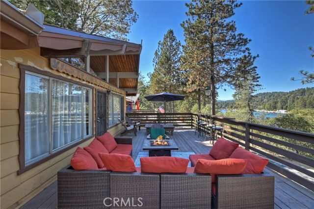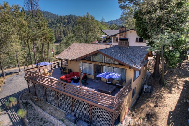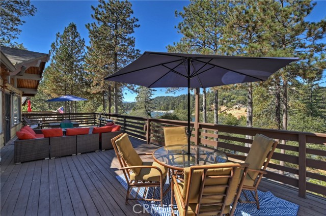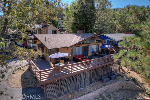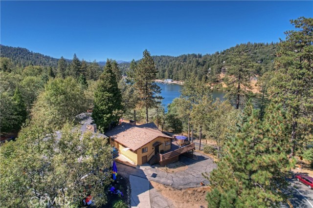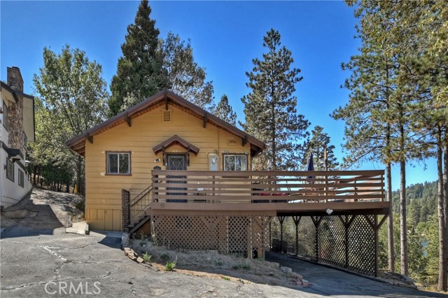Stunning updated lakeview lodge located on "The Point" with beautiful Lake Gregory located directly across the street. This home features dramatic vaulted T&G wood ceilings, wall of glass for maximum light & views, gorgeous fully remodeled custom kitchen with stainless appliances, luxury vinyl plank flooring throughout, huge party deck with sweeping up close views of Lake Gregory and much more. Floor to ceiling rock fireplaces in the living room and primary bedroom downstairs. Owners are selling the home turnkey furnished for the lucky Buyer and the home is currently a successful vacation rental. This gives the new owners plenty of options to produce income or just walk in and start enjoying the magnificent views. With Lake Gregory access directly across the street, there are miles of hiking trails, fishing, boating, dog parks, entertainment and dining all conveniently located right there by the lake. There are few homes on Lake Gregory with such sought after location and panoramic close up lakeviews. Don't miss this amazing opportunity, make your offer today!