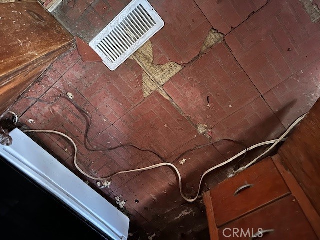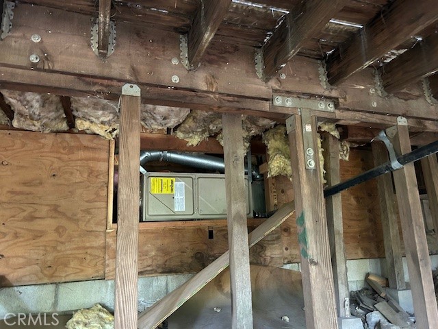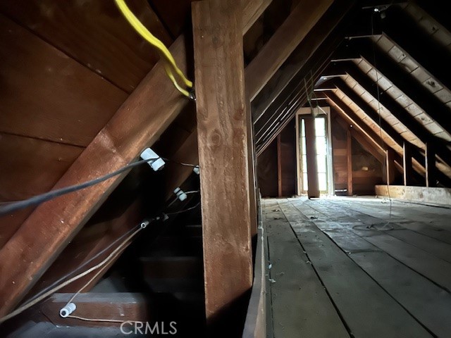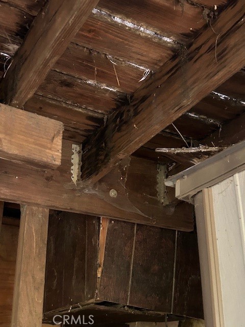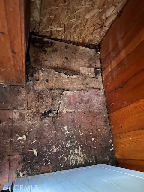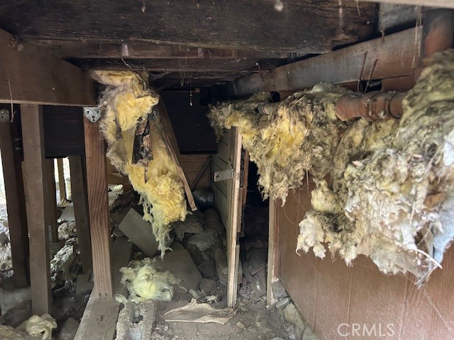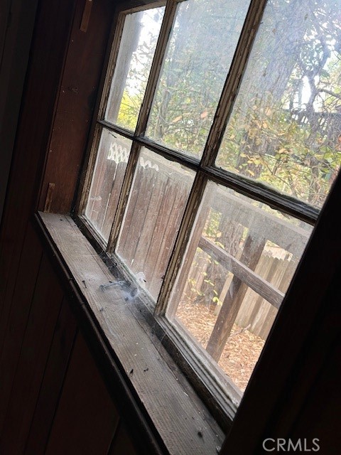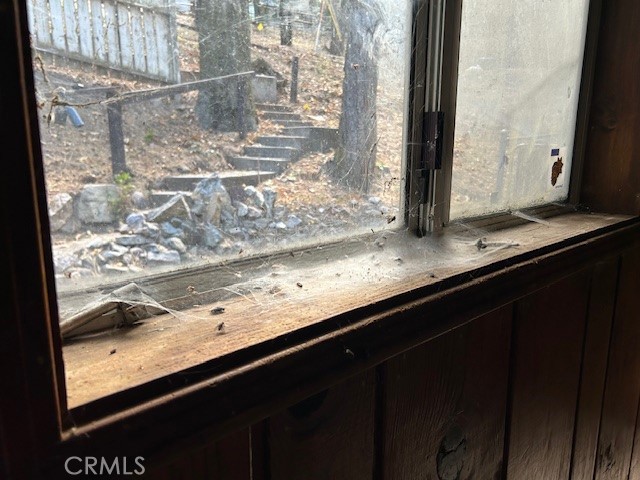 Adorable old-world getaway cabin that needs some loving. Needs siding repairs, dry rot on windows, bathroom and kitchen updating, carpet, flooring, possible repairs to FAU, roof over 25 yrs, post and pier foundation, possible wood fungus on decking, unknown condition if animals may be under house, like raccoon, rodents. It sits below the street from a set of concrete stairs. Very small kitchen with stove, cabinet for small frig. Large rock fireplace in living room. Knotty pine walls throughout. Down sloping yard has large dogwood trees. Huge party deck in rear and there are peek-a-boo views of the desert lights. Wood flooring under carpet and old linoleum. Very Small off-street Concrete parking pad may be difficult for larger cars. Main level sleeping room does not have closet but there's a small closet next to the Stacker washer/dryer, off of the 3/4 bath. Upstairs loft is a 2nd sleeping room and small deck. Storage under rear decking. The rare street to street lot is over 6,000 square feet and runs downslope from Crest Forest Drive to Oak Drive, which is off Ponderosa from Crest Forest Dr. Cabin needs some professional work, and buyers are requested and advised to get their inspections by qualified inspectors to consider what repairs may be needed. Septic system is approximately 11 years old. New plumbing and FAU were installed prior to 2012. Seller will not pay for any repairs, sold in as is condition.