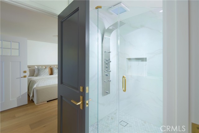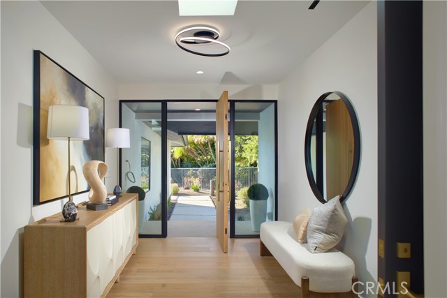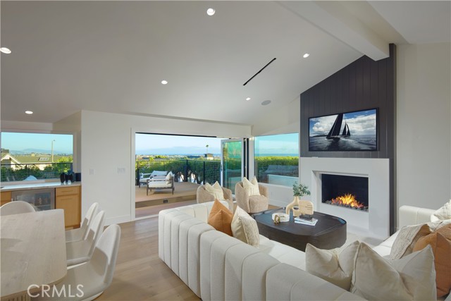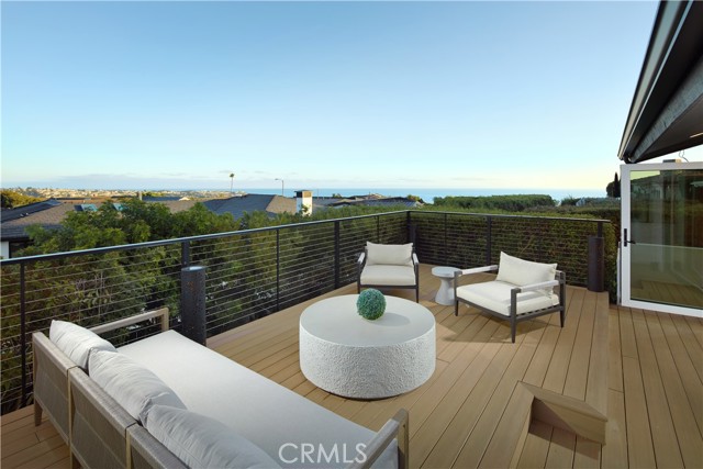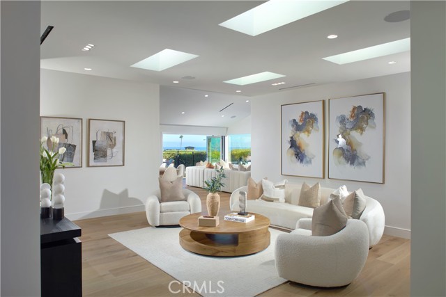Tucked away on a cul-de-sac in Monarch Bay Terrace, this single-level 4 bed, 3.5 bath, appx. 3005 Sq Ft showpiece with panoramic ocean views has been fully reimagined, expanded, and redesigned. From the moment you arrive at the private extended driveway framed by lush, low maintenance landscaping, the home reveals itself as a rare blend of timeless coastal style and modern innovation. Step inside through a dramatic rift-cut white oak pivot door and discover wide-plank French oak floors, soaring 10-foot ceilings, and gallery-like proportions. Oversized WinDor glass doors frame uninterrupted ocean views, opening to an expansive terrace designed for seamless indoor-outdoor living. At the heart of the home, the kitchen balances form and function with a 10 foot Taj Mahal leathered quartzite island, custom oak rift-cut cabinetry with glass accents, and professional-grade appliances including a Thermador range, True commercial refrigerator, and Miele coffee station. A built-in bar with ice maker, sink, Thor beverage center and storage connects the kitchen, dining, and living spaces for effortless entertaining. The primary suite captures the coastline through picture windows and opens to a private terrace. The spa-inspired bath is finished with backlit Namibia Mystery Blue marble, a sculptural soaking tub, oversized rain shower, and dual vanities—all complemented by a fully customized walk-in closet. Two additional bedrooms share a designer bath, while a fourth bedroom suite offers flexibility as live-in quarters, guest casita or as a multi-generational living space with its own entry, ensuite bath, bar sink and private patio. Multiple lounges, TimberTech decking, stainless cable railings, and a built-in sound system create a resort-like setting with the Pacific Ocean as the backdrop. The three-car garage showcases reflective full-view doors, marble-look epoxy flooring, and EV-readiness, doubling as a stylish showroom. Modern conveniences abound with all-new plumbing and electrical, tankless water heater, high-efficiency HVAC, whole-home automation, Sonos audio zones, and smart security, the residence delivers the peace of mind of new construction with the warmth of thoughtful design. 23262 Ellice Circle is more than a remodel—it’s a complete re-invention of the coastal California lifestyle, where luxury design meets everyday comfort against a backdrop of panoramic ocean views.