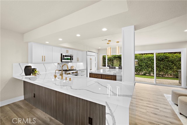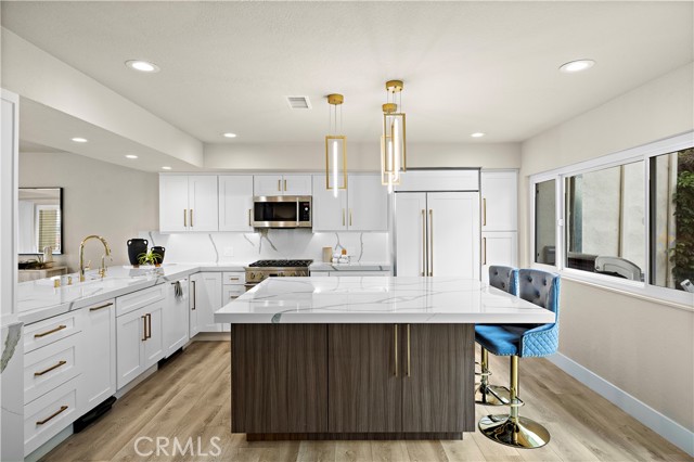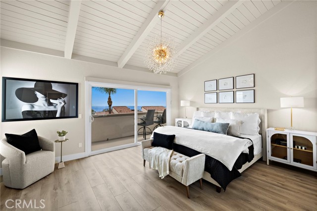 Located in the prestigious enclave of Monarch Beach within the secluded gated community of Monarch Bay Villas, this remarkable ocean-view end-unit villa has recently undergone an extensive and meticulous renovation from top to bottom including new PEX piping, sliding glass doors, new duct & heating system, water heater, recessed lighting, new air conditioner, top of the line whole house water filtration system, Insta Hot water system, new kitchen, new baths, wide plank flooring, custom closets throughout, custom window coverings throughout, new decks, fencing, hard and soft scape, landscaping, irrigation, new fencing and much more. The spacious living room serves as a captivating focal point with its lofty wood-beamed ceilings, inviting fireplace, and, notably, the allure of the large private balcony offering refreshing ocean and golf course views. The expansive gourmet kitchen showcases elegant custom cabinetry, quartz countertops, a large island at its center, and top-of-the-line built-in appliances, including a 42" refrigerator, dishwasher, gas range & oven, disposal and trash compactor. Just off the kitchen, enjoy some downtime in the family room or embrace the indoor-outdoor lifestyle on the well-appointed private patio awaiting you with hard and soft scaping and private hot tub. Upstairs, the primary suite offers a private ocean view balcony. The home boasts white water views of Salt Creek Beach as well as Catalina Island to the Dana Point headlands, the iconic Monarch Beach Golf Links the oceanfront golf course designed by premier golf course architect Robert Trent Jones Jr., majestic landscapes of two world-class luxury resorts—the Ritz Carlton and the Waldorf Astoria.  An oversized 2 car garage has built in storage cabinets and a large separate storage closet and an EV charger. The Monarch Bay Villas community provides direct trail access to the Salt Creek Trail, Waldorf Astoria, a variety of restaurants, cafes, salons, fitness facilities, and shopping destinations at the nearby Monarch Bay Plaza. All residences within Monarch Bay Villas received a new clay tile roof and freshly painted exteriors in 2022. Whether you seek a primary residence or an enchanting vacation retreat, this extraordinary opportunity invites you to own your slice of coastal paradise in the hidden gem of Monarch Bay Villas. Community amenities include a private pool, spa, clubhouse, billiards room, fitness room, dry sauna, restrooms, open green spaces and barbecue area.