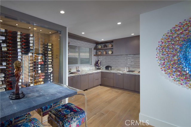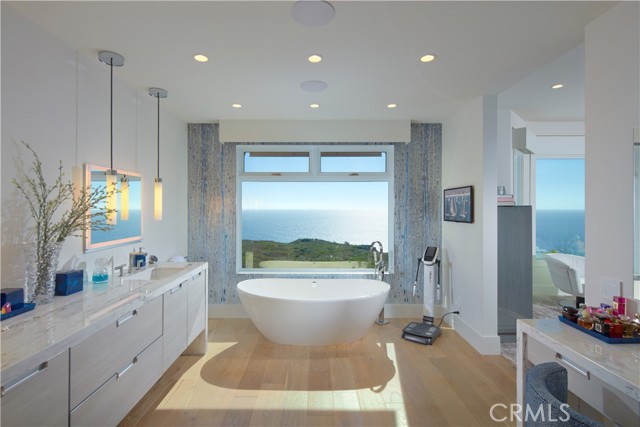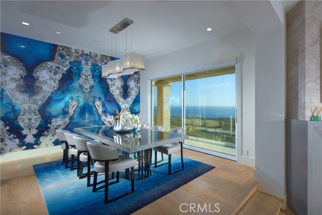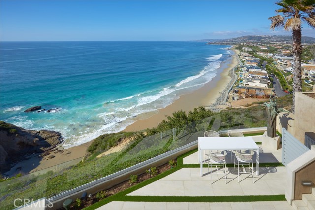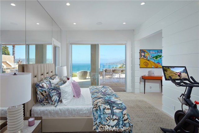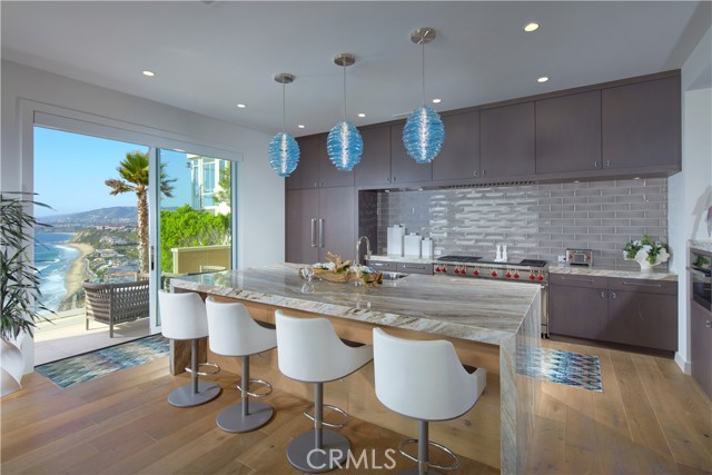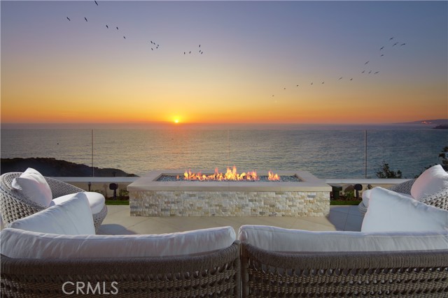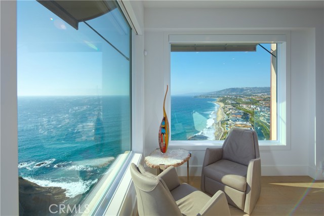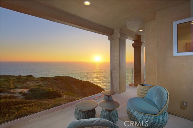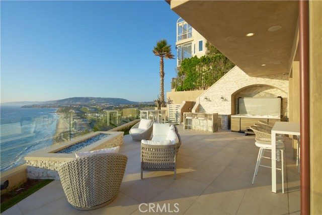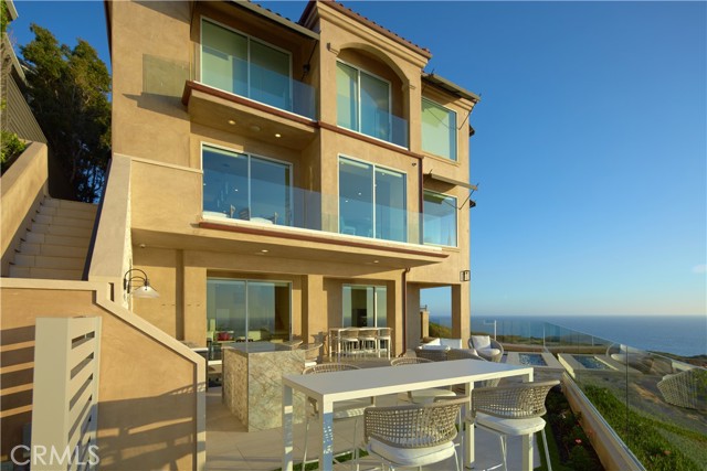 OCEANFRONT WITH UNIQUE 7-CAR GARAGE. Perched atop Dana Point's historic Headlands, Residence B immerses you in unmatched ocean vistas from San Diego to Palos Verdes, blending modern luxuries with coastal elegance. This home stands apart due to a major remodel in 2017 and subsequent upgrades in 2021 and 2023, setting a new benchmark in coastal luxury living. As the largest floorplan in the community, this recently remodeled home boasts today's most desired features, offering bespoke living at the Pacific Ocean's edge. The unparalleled views span from San Diego, across crashing waves and sandy shores, to Catalina and north to Palos Verdes. This approximately 4,537 SF home includes three en-suite bedrooms and three-and-a-half baths. Upon entering through the gated entrance and double doors, you're greeted by a breathtaking foyer with an immediate ocean view, a Quintus chandelier, and a J.H. Minasian silk rug. Many hand-picked furnishings, included in the residence, are from top designers such as Roche Bobois, Cantoni, Holly Hunt, Shine by Sho, Ziething, and Jonathan Franc. The ocean-view dining room is accentuated by a custom glass wall panel, while the great room showcases vast windows, a linear fireplace, and a balcony with beach views. The state-of-the-art kitchen shines with beautiful quartz countertops, a sizable island, a walk-in pantry, and built-in appliances from Sub-Zero, Wolf, and Miele, including a coffee station, steam oven, and microwave/convection oven. Just steps above the main kitchen, discover a butler's pantry and a glass-enclosed, temperature-controlled wine room with a 567-bottle capacity. On the other wing, a chic home theater boasts over $156,000 in top-tier AV equipment and a built-in concessions cabinet. The primary suite offers mesmerizing ocean views, Thomas Lavin wall coverings, a standalone tub, built-in vanity, quartz countertops, and a spacious walk-in closet with custom California Closets built-ins. A new glass and steel staircase descends to the lower level, which invites relaxation in the family room, workouts in the gym that features an attached full bath, or outdoor enjoyment in the fully renovated backyard with an above-ground spa. The residence concludes with a seven-car custom-style garage, private with a separate garage door and access to the lower level.