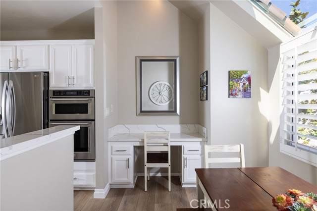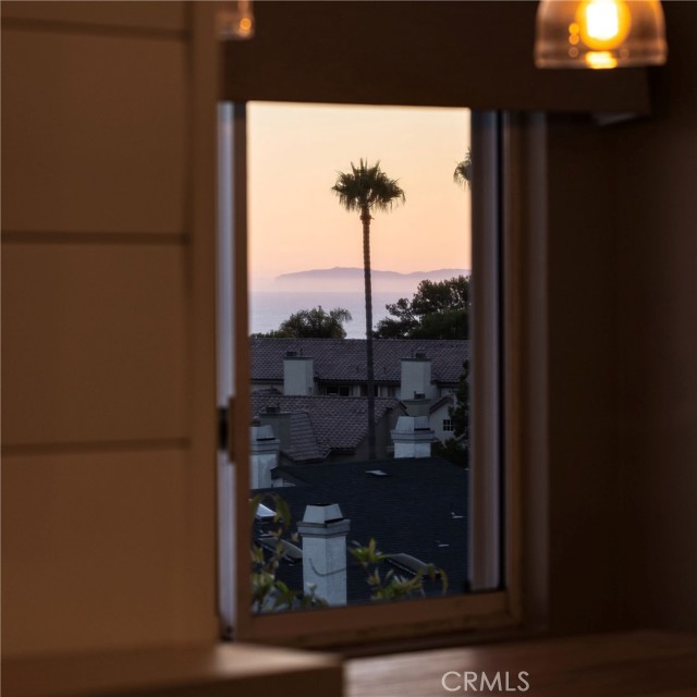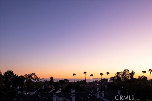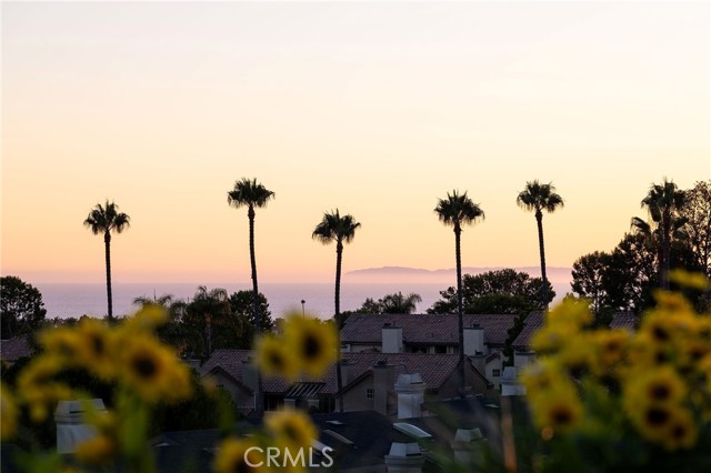Experience elevated Dana Point coastal living in the exclusive gated community of Encantamar, where ocean views and sunset colors are your daily backdrop. This single-level home features a flowing, open concept with two bedrooms, two full baths, and extensive updates throughout, all oriented to enjoy the coastline and evening skies. Arrive to your private two-car garage with electric vehicle charging outlet and plenty of guest parking nearby. Inside, a formal foyer opens to light-filled living and dining areas with a custom fireplace and sliding doors to a view deck. A bar nook and outdoor living space make entertaining simple, and the southwest exposure frames nightly color over the water. Wide-plank floors guide you through the designer chef's kitchen, featuring quartz countertops, crisp white cabinetry, subway-tile backsplash, and stainless-steel appliances. Vaulted ceilings create an airy atmosphere in the eat-in breakfast nook and convenient quartz built-in desk, while skylights bathe the space in natural light. Both bathrooms have also been remodeled with elegant quartz finishes and upgraded fixtures. The thoughtful floor plan places the two bedrooms on opposite sides for maximum privacy and flexibility. The first spacious bedroom features vaulted ceilings, a large window with plantation shutters, and a generous walk-in closet. The primary suite serves as a private retreat, complete with a sitting area that captures stunning views, plus an upgraded en-suite bath with a double-sink vanity and large walk-in closet. Convenient in-unit laundry is located nearby. Located in the highly desired Encantamar community, you'll enjoy walking distance to shopping, dining, and theaters, with Dana Point Harbor, beaches, and the 5 freeway just minutes away. Community amenities include a year-round heated pool, spa, clubhouse, and fitness center. This is coastal living at its best, offering the complete package of views, location, and community lifestyle.