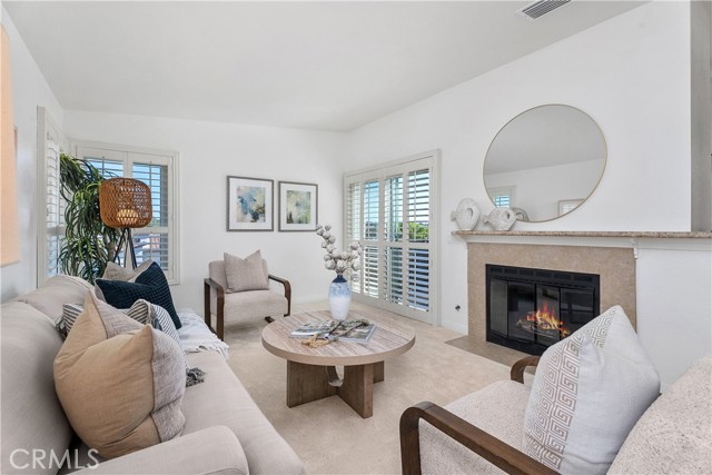 Welcome to your peaceful retreat in the prestigious 24/7 guard-gated community of Ritz Pointe. 56 Corniche Drive, Unit J is a top-floor Monarch Hills condo offering 2 bedrooms and 2 bathrooms in a premier Dana Point location. This light-filled residence has been thoughtfully cared for by the same owner for 28 years and features fresh paint and carpet just completed in September. It was fully re-piped in 2024, and the heat pump, air conditioning, and water heater have all been replaced within the past three years for added peace of mind. A spacious balcony provides a peaceful place to relax, with an unobstructed panoramic view and ocean glimpses on clear days. Inside, you’ll find a comfortable layout with walk-in closets in both bedrooms, a fireplace in the living room, and galley-style, functional kitchen. The washer, dryer, and refrigerator are included. Ritz Pointe residents enjoy access to resort-style amenities including a pool, fitness center, clubhouse, and three spas, one with expansive ocean views. A nearby walking and biking trail winds through Monarch Beach Golf Course and leads directly to Salt Creek and Strands Beach. With close proximity to Dana Point Harbor, local dining, and world-class resorts, this home offers a quiet and convenient lifestyle by the sea.
